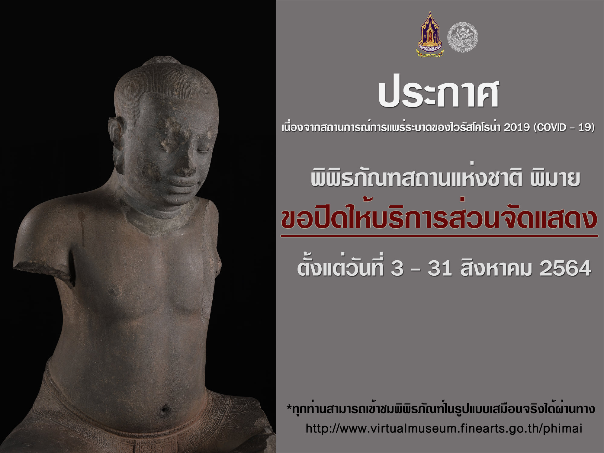 นายประทีป เพ็งตะโก อธิบดีกรมศิลปากร เปิดเผยว่า ตามที่นายกรัฐมนตรีในฐานะผู้อํานวยการ ศูนย์บริหารสถานการณ์โควิด-19 โดยคําแนะนําของศูนย์บริหารสถานการณ์การแพร่ระบาดของโรคติดเชื้อไวรัส โคโรนา 2019 (โควิด-19) (ศบค.) ได้อาศัยอํานาจตามความในมาตรา ๙ แห่งพระราชกําหนดการบริหารราชการในสถานการณ์ฉุกเฉิน พ.ศ. ๒๕๔๘ และมาตรา ๑๑ แห่งพระราชบัญญัติระเบียบบริหารราชการแผ่นดิน พ.ศ. ๒๕๓๔ ประกาศใช้บังคับข้อกําหนดออกตามความในมาตรา ๙ แห่งพระราชกําหนดการบริหารราชการใน สถานการณ์ฉุกเฉิน พ.ศ. ๒๕๔๘ (ฉบับที่ ๓๐) ลงวันที่ ๑ สิงหาคม พ.ศ. ๒๕๖๔ รวมทั้งออกคําสั่งศูนย์บริหาร สถานการณ์การแพร่ระบาดของโรคติดเชื้อไวรัสโคโรนา 2019 (โควิด-19) ที่ ๑๑/๒๕๖๔ เรื่อง พื้นที่สถานการณ์ ที่กําหนดเป็นพื้นที่ควบคุมสูงสุดและเข้มงวด พื้นที่ควบคุมสูงสุด และพื้นที่ควบคุม ตามข้อกําหนดออกตามความ ในมาตรา ๙ แห่งพระราชกําหนดการบริหารราชการในสถานการณ์ฉุกเฉิน พ.ศ. ๒๕๔๘ ปรับปรุงเขตพื้นที่จังหวัด ตามพื้นที่สถานการณ์การแพร่ระบาดของโรคติดเชื้อไวรัสโคโรนา 2019 (โควิด-19) รวมทั้งขยายระยะเวลาการใช้ บังคับข้อกําหนดออกตามความในมาตรา ๙ แห่งพระราชกําหนดการบริหารราชการในสถานการณ์ฉุกเฉิน พ.ศ. ๒๕๕๘ (ฉบับที่ ๒๘) ลงวันที่ ๑๗ กรกฎาคม พ.ศ. ๒๕๖๔ ออกไปจนถึงวันที่ ๓๑ สิงหาคม พ.ศ. ๒๕๖๔