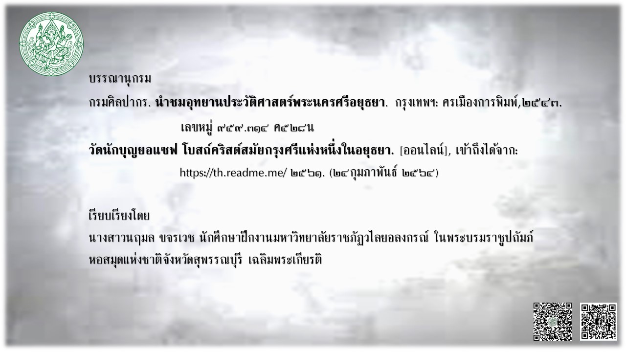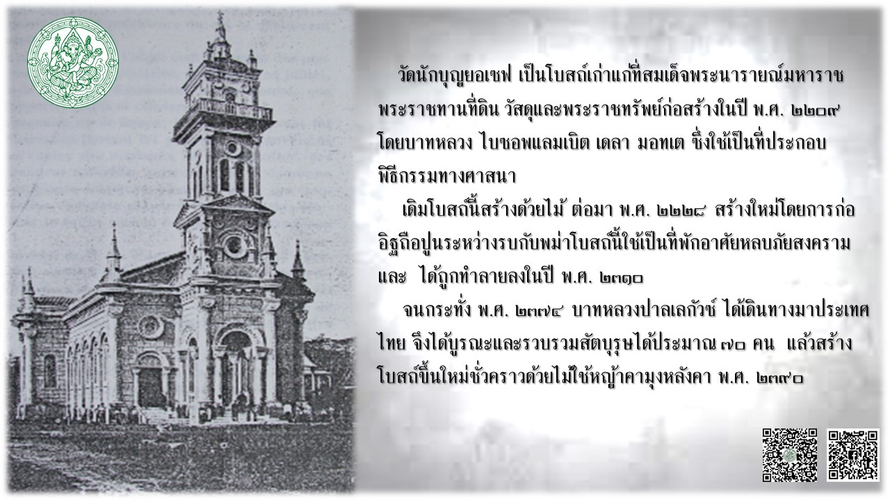 วัดนักบุญยอแซฟ โบสถ์คริสต์สมัยกรุงศรีแห่งหนึ่งในอยุธยา. [ออนไลน์], เข้าถึงได้จาก: https://th.readme.me/ ๒๕๖๑. (๒๔กุมภาพันธ์ ๒๕๖๔)