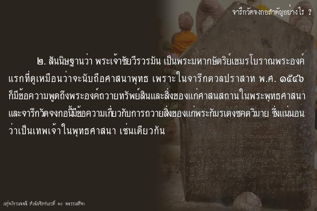 ภายหลังได้โยกย้าย มาตั้งถิ่นฐาน ใกล้กับเมืองพิมาย โดยประเด็นนี้ เป็น 1 ใน 3 ประเด็น ที่จารึกวัดจงกอ ช่วยเราสืบสาวราวเรื่อง ที่เกี่ยวกับ พระเจ้าชัยวีรวรมัน ได้เป็นอย่างดี
