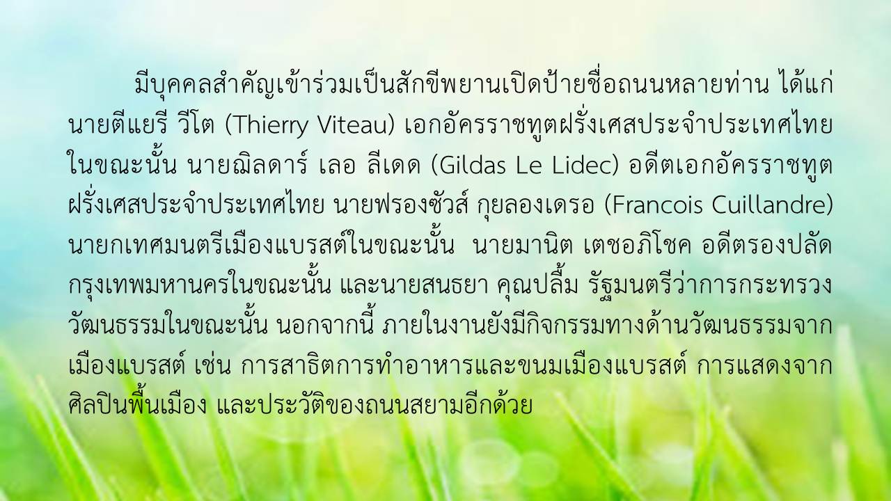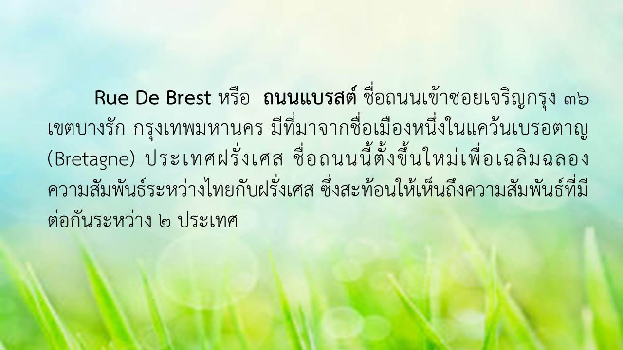 องค์ความรู้ : กลุ่มประวัติศาตร์ สำนักวรรณกรรมและประวัติศาสตร์ เรื่อง ถนนแบรสต์: ถนนสายสัมพันธ์ไทย - ฝรั่งเศส