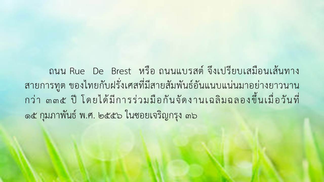ถนนแบรสต์: ถนนสายสัมพันธ์ไทย - ฝรั่งเศส