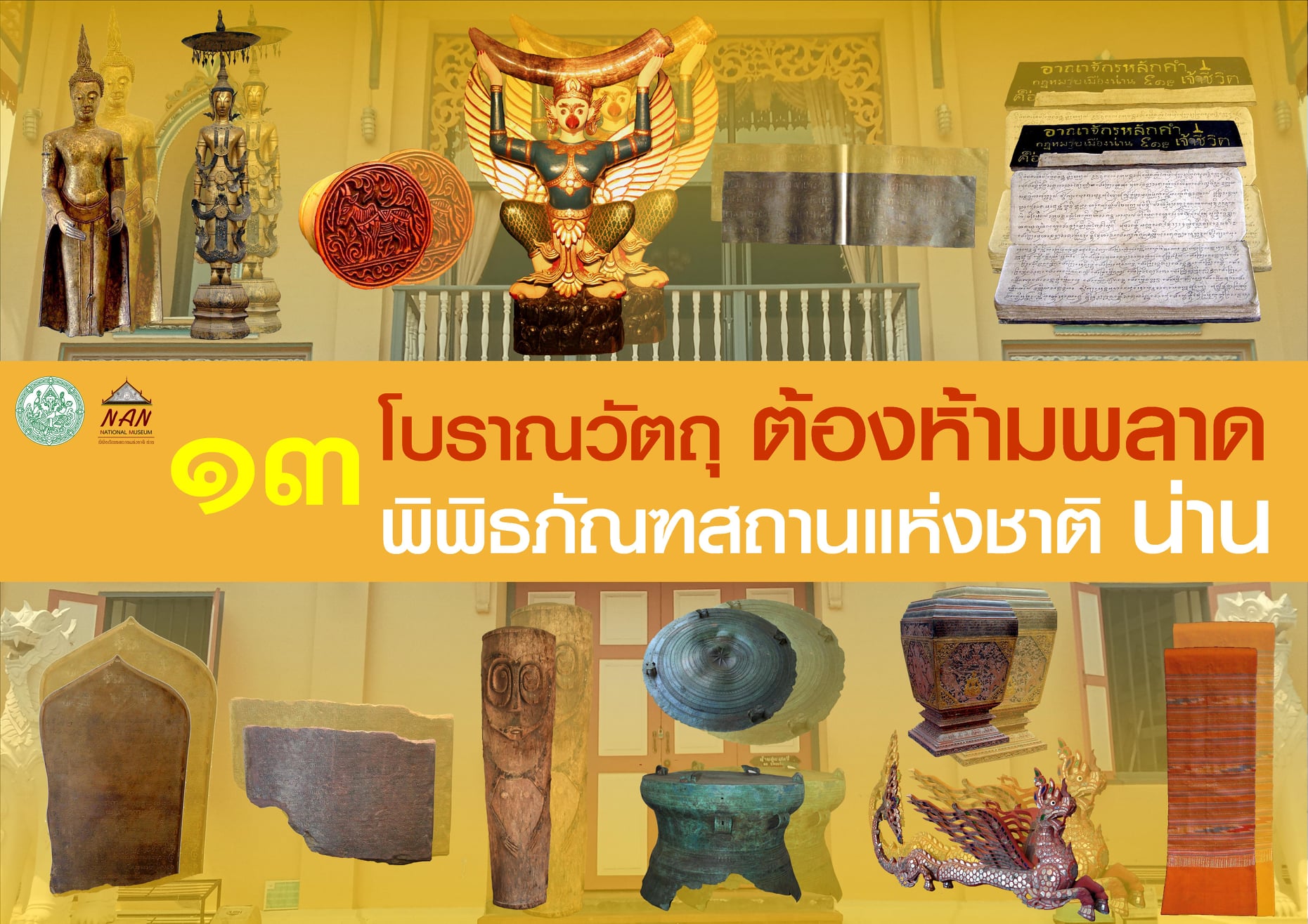 โบราณวัตถุทั้ง ๑๓ ชิ้นที่ต้องห้ามพลาด เมื่อมาเยี่ยมชมพิพิธภัณฑสถานแห่งชาติ น่าน ได้แก่