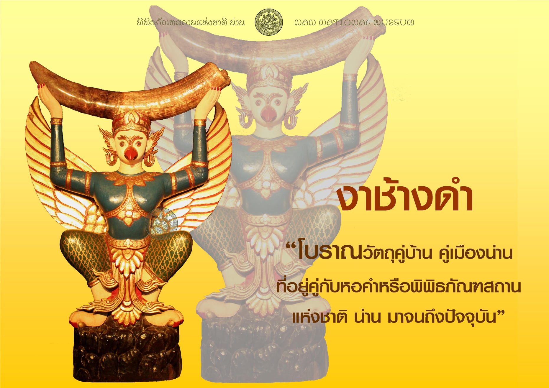 ๑. งาช้างดำ เป็นโบราณวัตถุคู่บ้าน คู่เมืองน่าน ที่อยู่คู่กับหอคำหรือพิพิธภัณฑสถานแห่งชาติ น่าน มาจนถึงปัจจุบัน