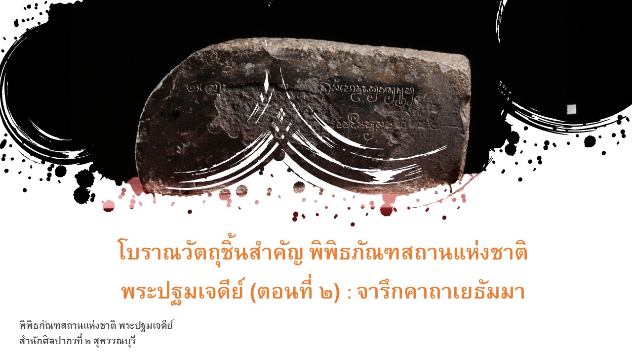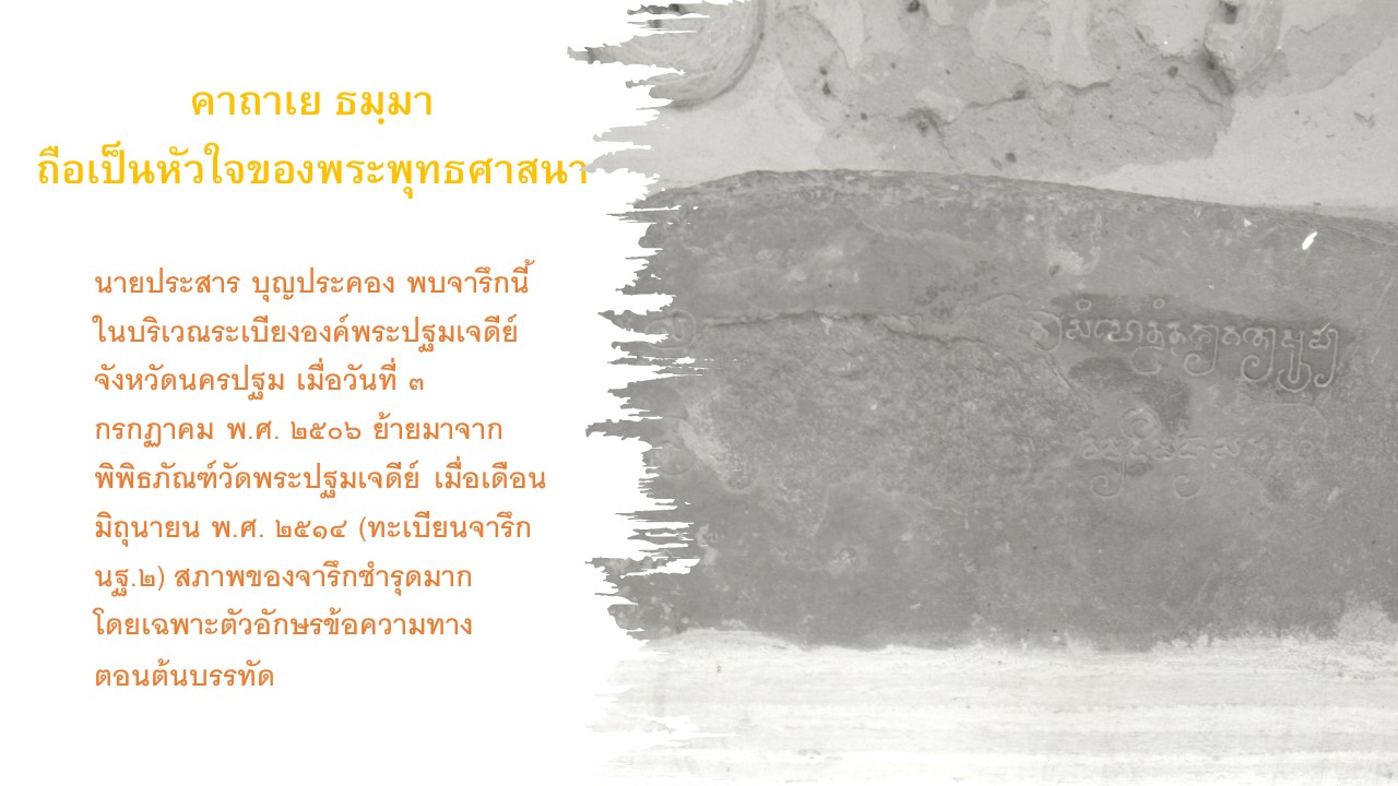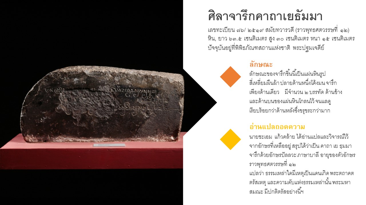 โบราณวัตถุชิ้นสำคัญ ในพิพิธภัณฑสถานแห่งชาติ พระปฐมเจดีย์ ตอน จารึกคาถาเยธัมมา