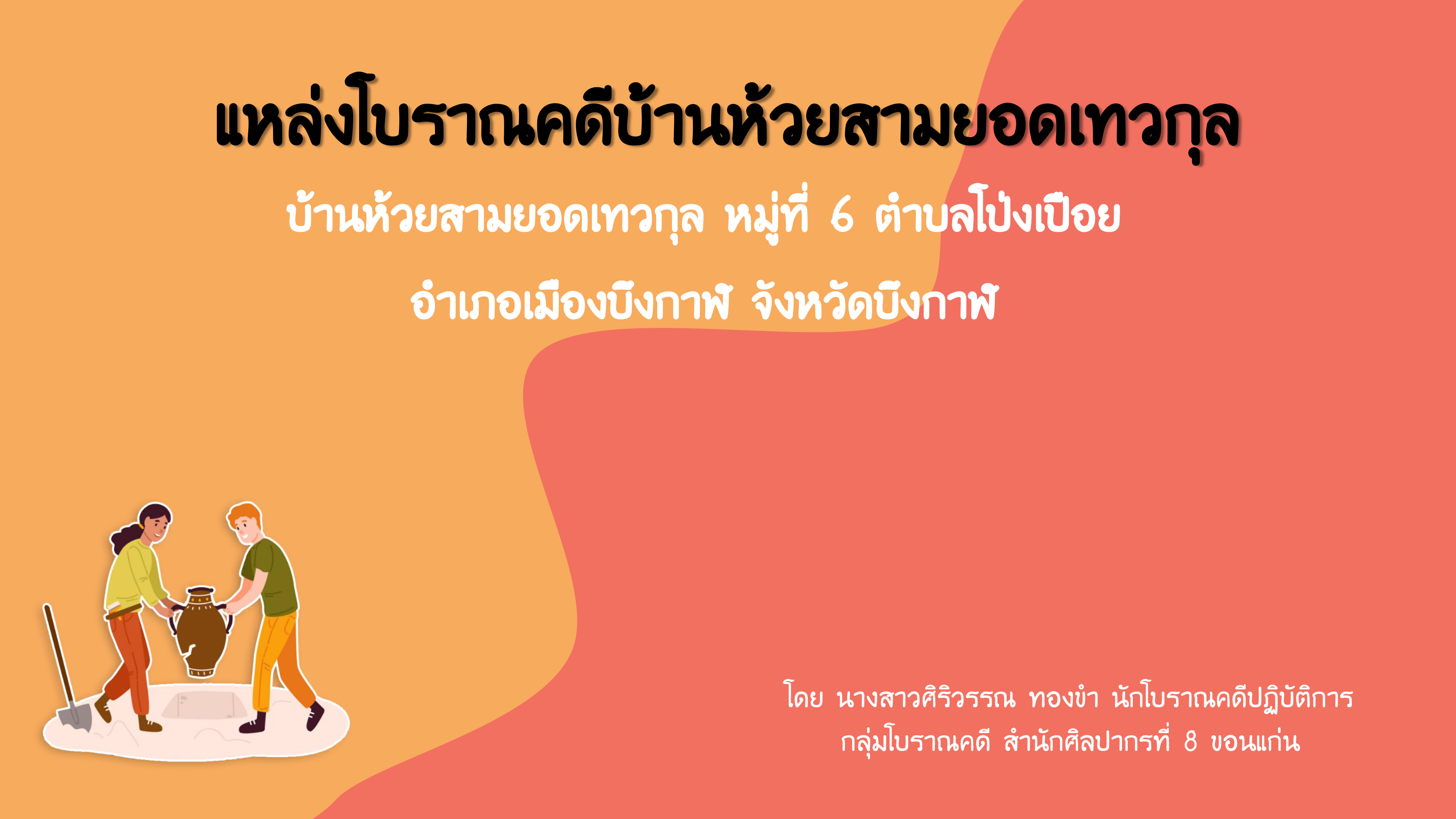 องค์ความรู้สำนักศิลปากรที่ ๘ ขอนแก่น เรื่อง แหล่งโบราณคดีบ้านห้วยสามยอดเทวกุล จังหวัดบึงกาฬ