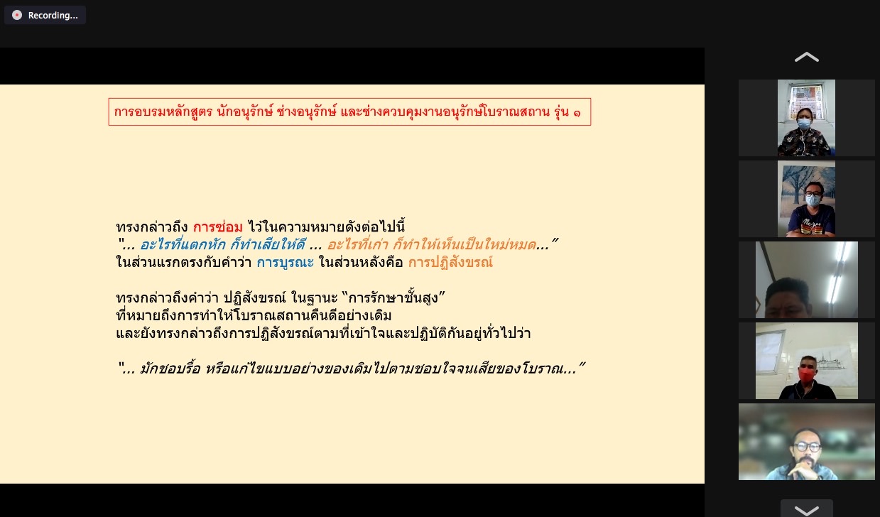 กรมศิลปากรจัดอบรมหลักสูตรนักอนุรักษ์ ช่างอนุรักษ์ และผู้คุมงานอนุรักษ์โบราณสถาน รุ่นที่ ๑