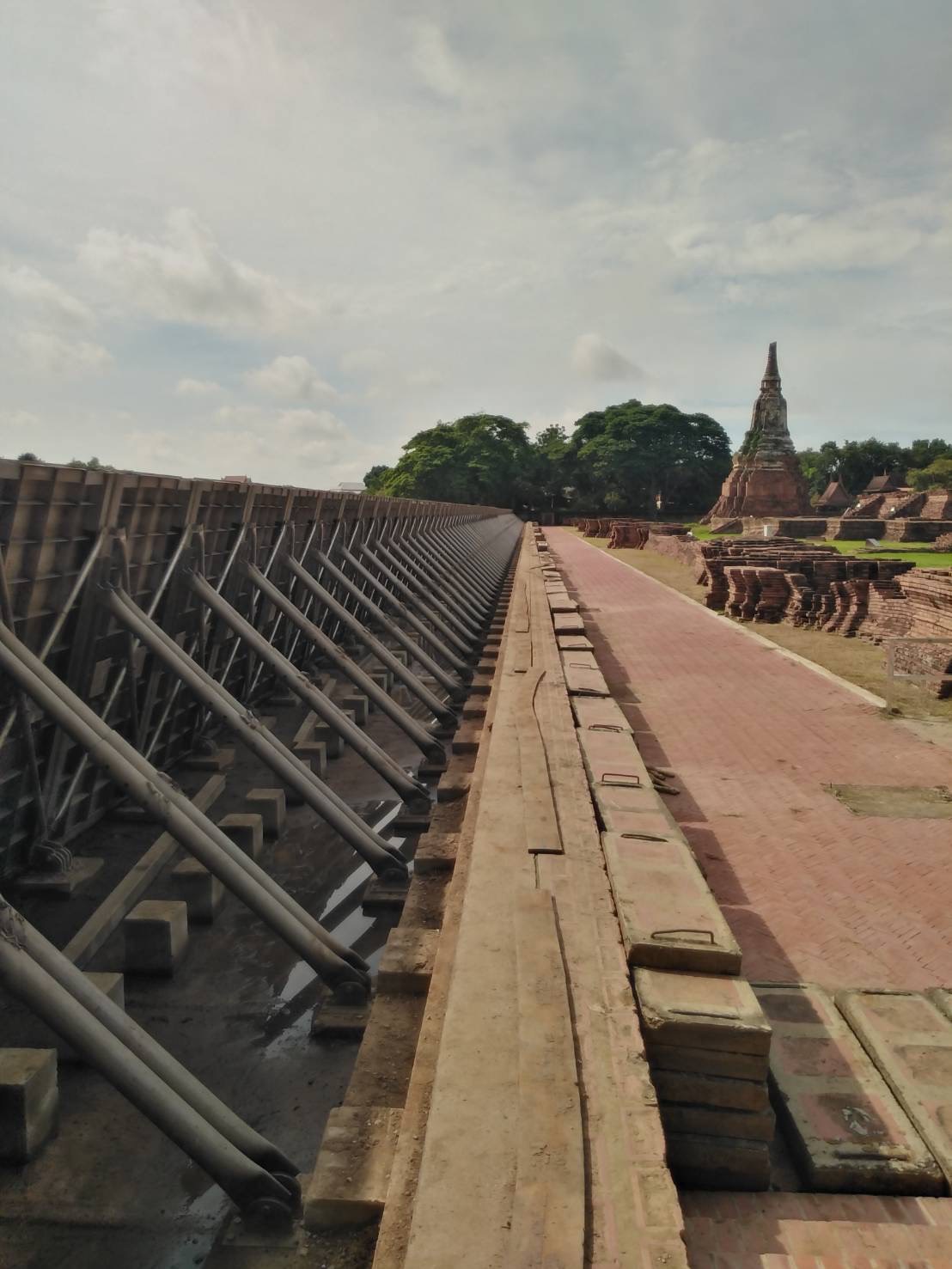 ส่วนในพื้นที่อุทยานประวัติศาสตร์พระนครศรีอยุธยา ที่มีความเสี่ยงมากกว่าพื้นที่อื่นๆ อธิบดีกรมศิลปากรได้สั่งการให้สำนักศิลปากรที่ ๓ พระนครศรีอยุธยา เร่งเตรียมพร้อมรับมืออย่างเต็มที่ โบราณสถานสำคัญที่อยู่ในความเสี่ยงได้รับผลกระทบมาก ได้แก่ วัดไชยวัฒนาราม ในวันนี้ระดับน้ำในแม่น้ำเจ้าพระยามีระดับต่ำกว่าสันเขื่อนประมาณ ๔๐ ซม. ขณะนี้ได้ทำการตั้งแผงป้องกันน้ำเรียบร้อยแล้ว ส่วนโบราณสถานอื่นๆ ระดับน้ำยังอยู่ต่ำกว่าสันเขื่อนเฉลี่ย ๕๐-๘๐ ซม. เช่น วัดธรรมมาราม วัดกษัตราธิราชวรวิหาร ที่กำลังตั้งแผงกันน้ำจะแล้วเสร็จในวันพรุ่งนี้ รวมถึงเร่งดำเนินการตั้งแผงกันน้ำที่หมู่บ้านโปรตุเกสจะแล้วเสร็จในเวลาไล่เลี่ยกัน ส่วนโบราณสถานป้อมเพชรและหมู่บ้านฮอลันดายังอยู่สูงกว่าระดับน้ำประมาณ ๑ เมตร วัดเชิงท่าระดับน้ำในแม่น้ำลพบุรียังมีระดับต่ำกว่าสันเขื่อนประมาณ ๑.๒๐ เมตร