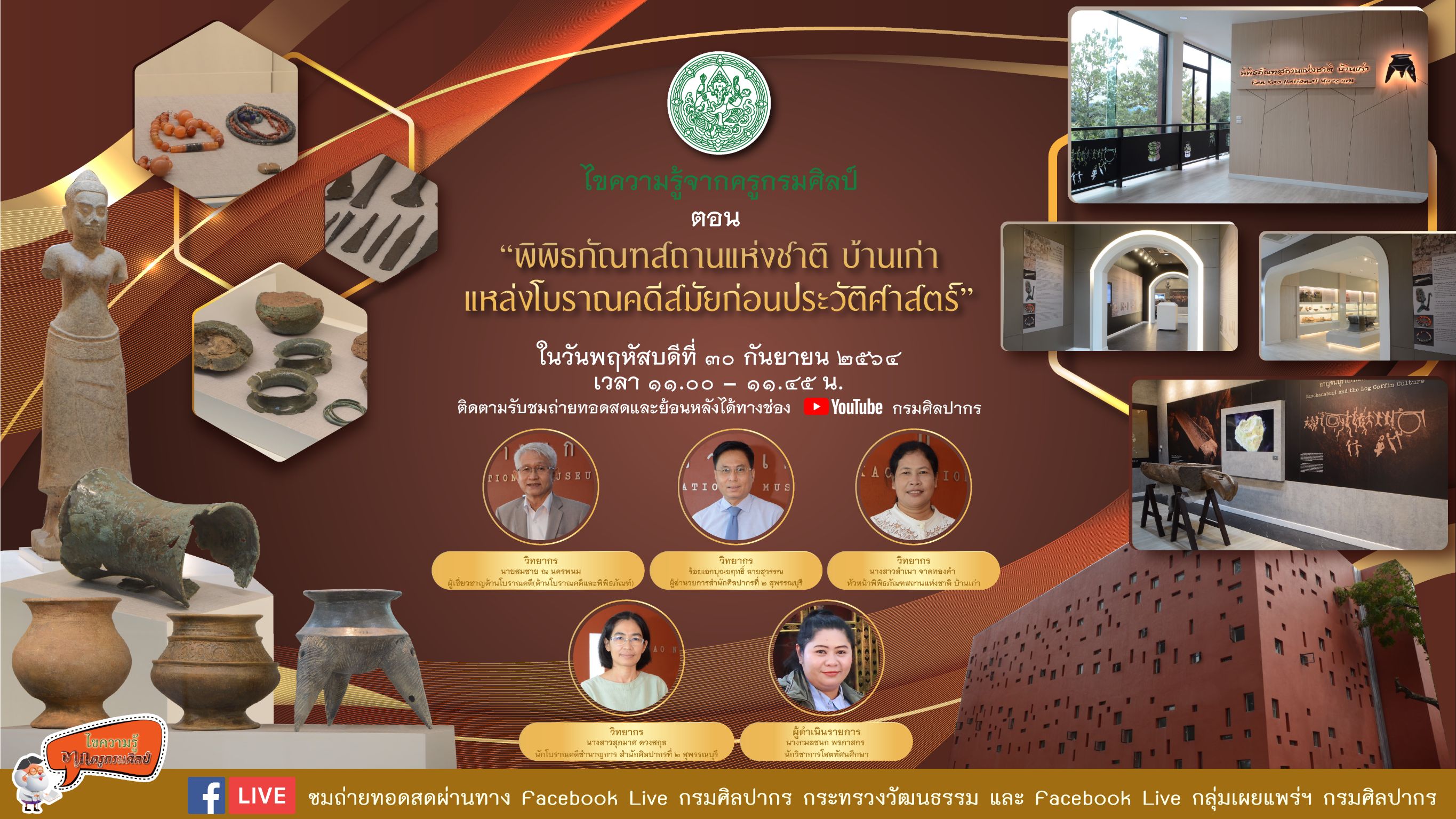 ขอเชิญชมFacebook Live รายการไขความรู้จากครูกรมศิลป์ ตอน “พิพิธภัณฑสถานแห่งชาติ บ้านเก่า แหล่งโบราณคดีสมัยก่อนประวัติศาสตร์”