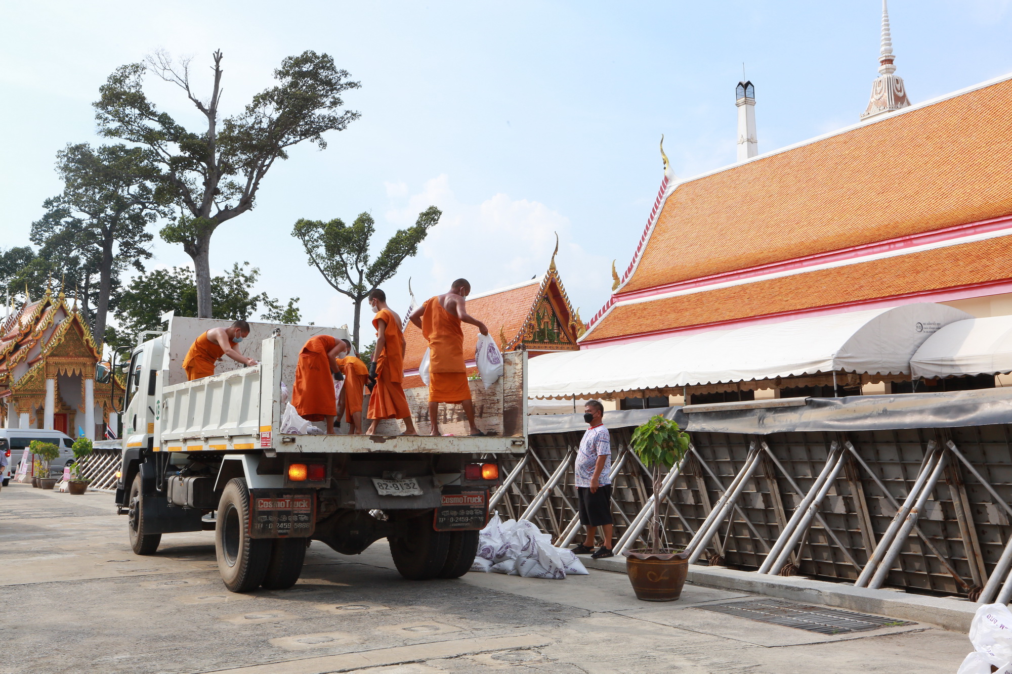 ๓. วัดธรรมมาราม ใช้วิธีการป้องกันน้ำท่วมโดยวิธีการตั้งแผงป้องกันน้ำท่วมรูปแบบที่สามารถยก ตั้งขึ้นและพับเก็บได้ป้องกันบริเวณด้านตะวันออกของวัด ริมแม่น้ำ แนวป้องกันน้ำท่วมมีความยาวประมาณ ๑๓๐ เมตร สูงจากพื้นประมาณ ๑.๗๐ เมตร