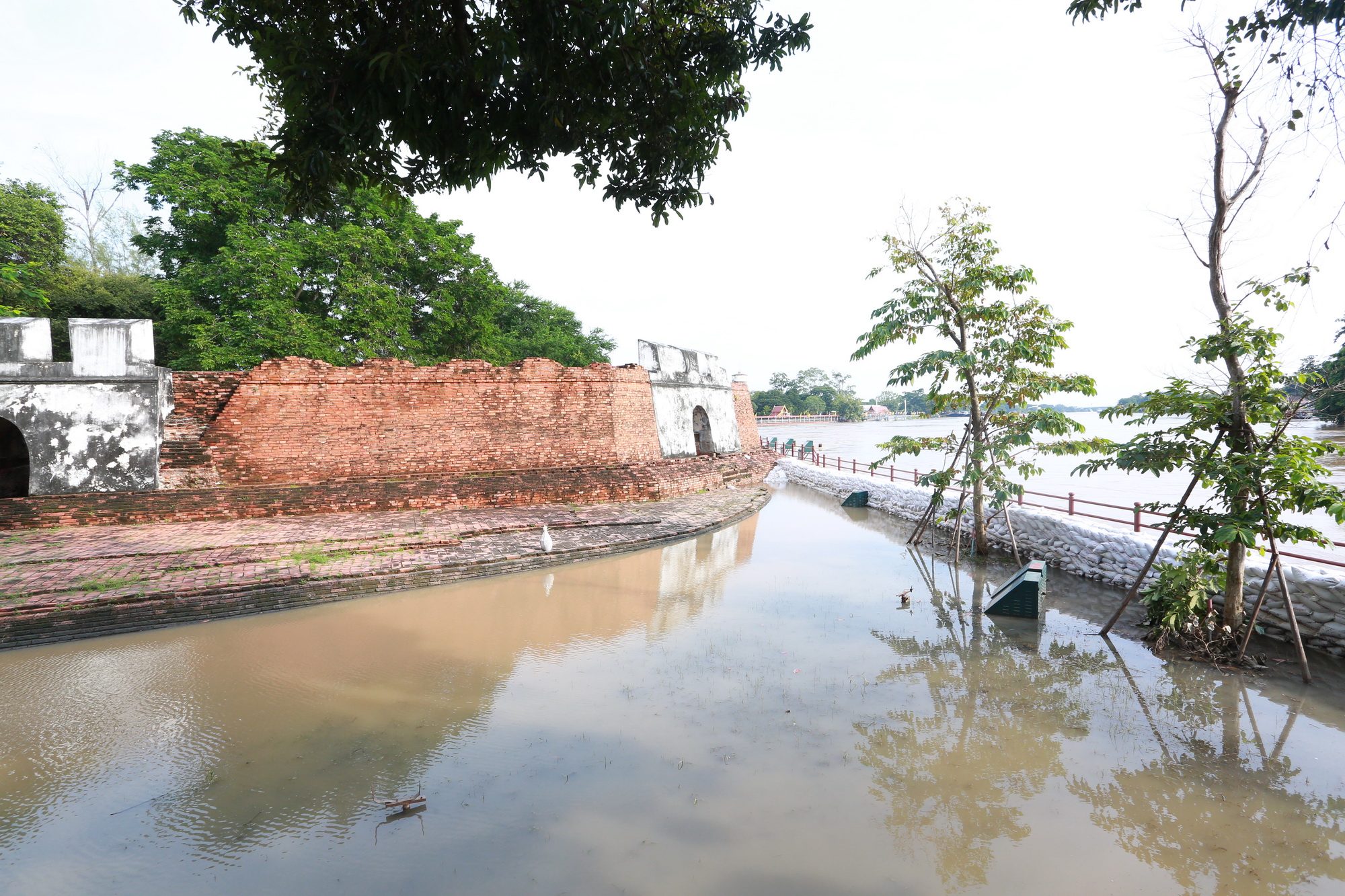 ๗. โบราณสถานป้อมเพชร เป็นจุดที่แม่น้ำป่าสักบรรจบกับแม่น้ำเจ้าพระยา ในช่วงฤดูน้ำหลากของทุก ปีระดับน้ำมักขึ้นสูงจนล้นระดับแนวตลิ่ง ลักษณะของการป้องกันน้ำท่วมใช้วิธีการตั้งแนวกระสอบทราย ป้องกันบริเวณด้านใต้ของพื้นที่