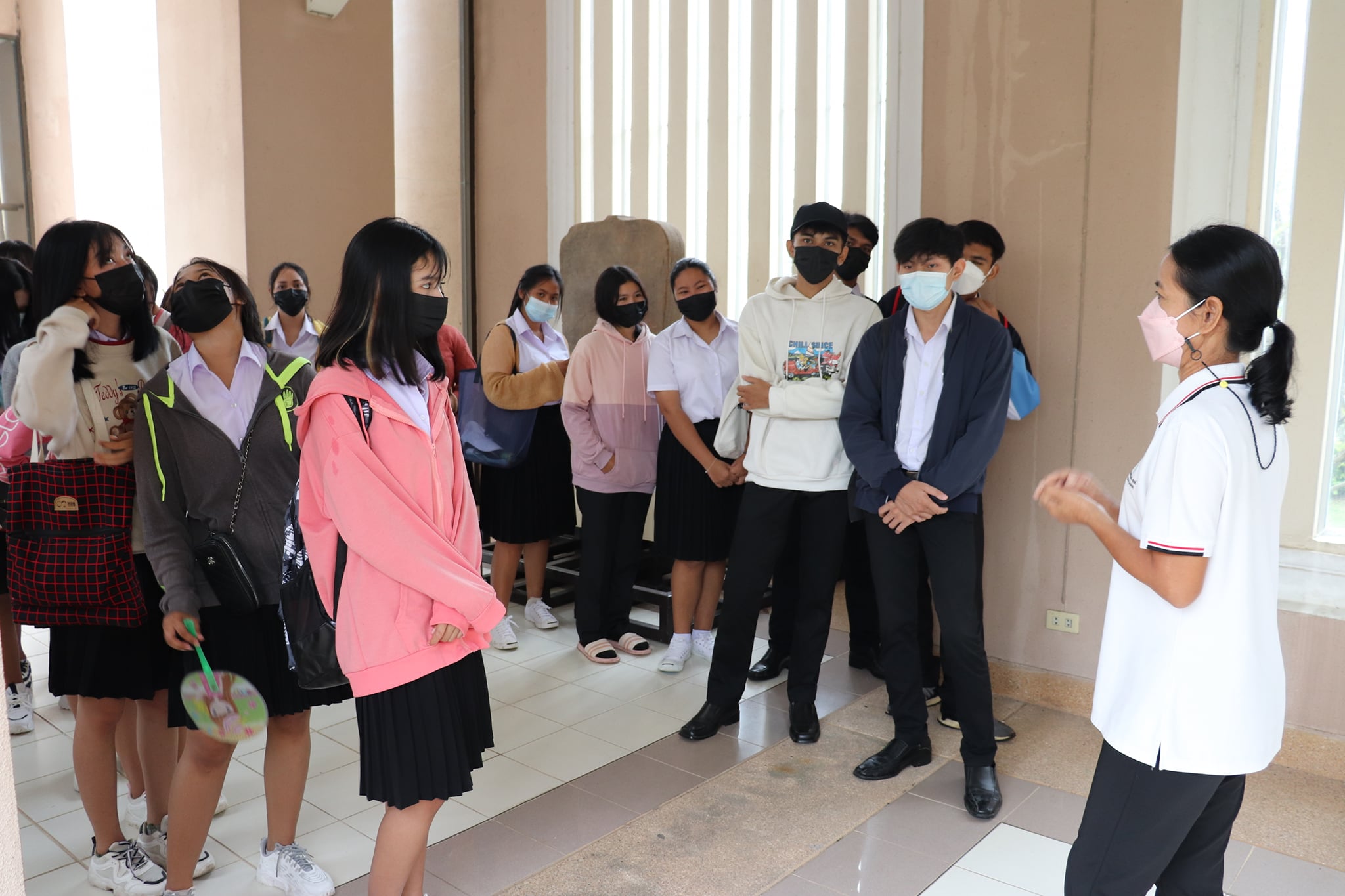 วันพฤหัสบดีที่ ๑๔ ตุลาคม พ.ศ. ๒๕๖๔ เวลา ๑๔.๐๐ น. นักศึกษาชั้นปีที่ ๑ สาขาวิชารัฐประศาสนศาสตร์ มหาวิทยาลัยราชภัฏสุรินทร์ จำนวนนักศึกษา ๖๐ คน อาจารย์ ๒ คน เข้าเยี่ยมชมพิพิธภัณฑสถานแห่งชาติ สุรินทร์ โดยแบ่งการบรรยายนำชมออกเป็น ๓ กลุ่มย่อย เพื่อป้องกันการแพร่ระบาดของเชื้อโควิด - ๑๙ โดยมีนางถนอม หลวงกลาง นางศรีสุดา ศรีสดและนางสาวอภิญญา สุขใหญ่ พนักงานประจำพิพิธภัณฑ์ ให้การต้อนรับและบรรยายนำชม