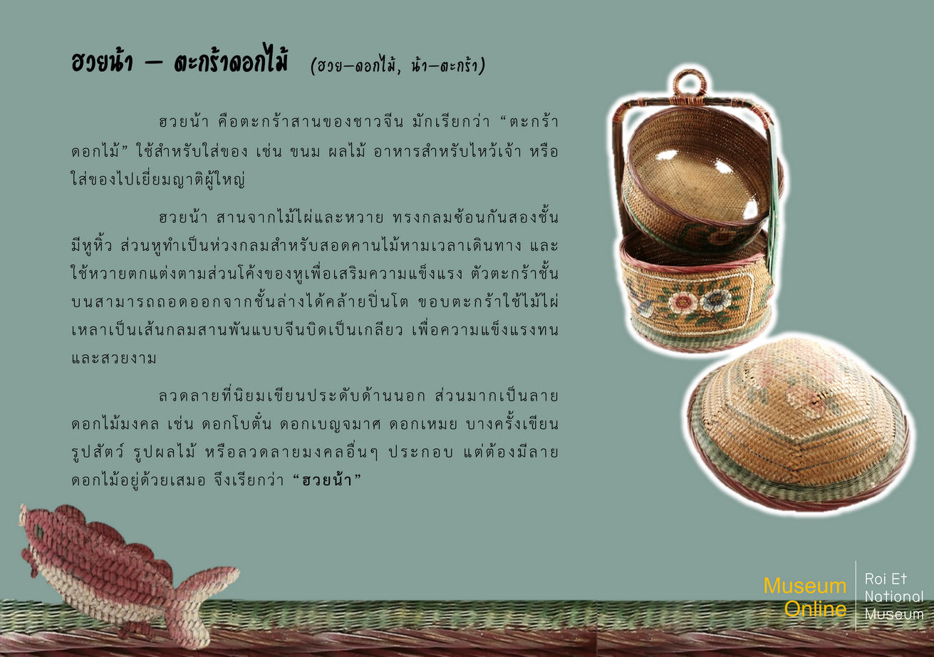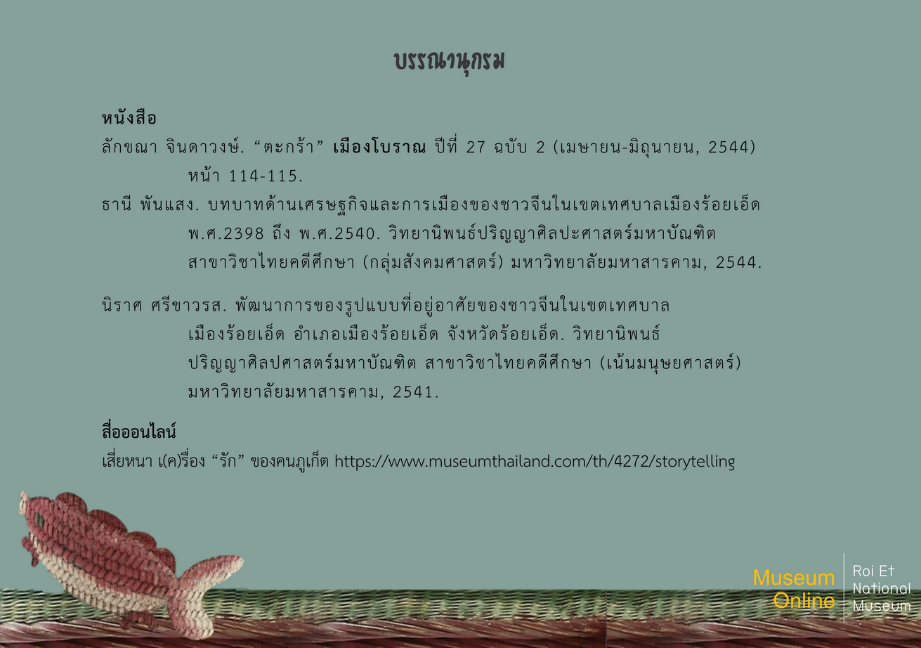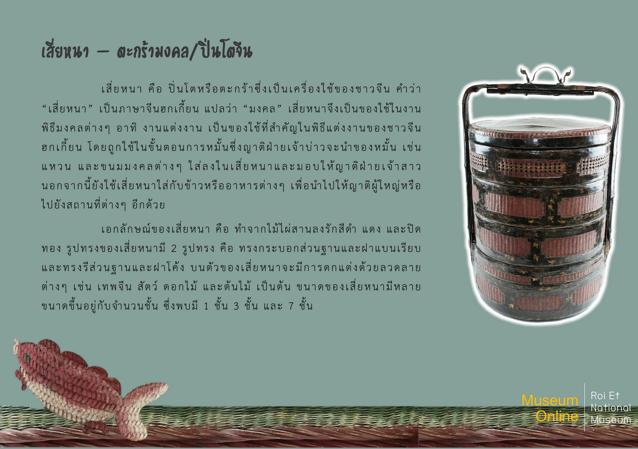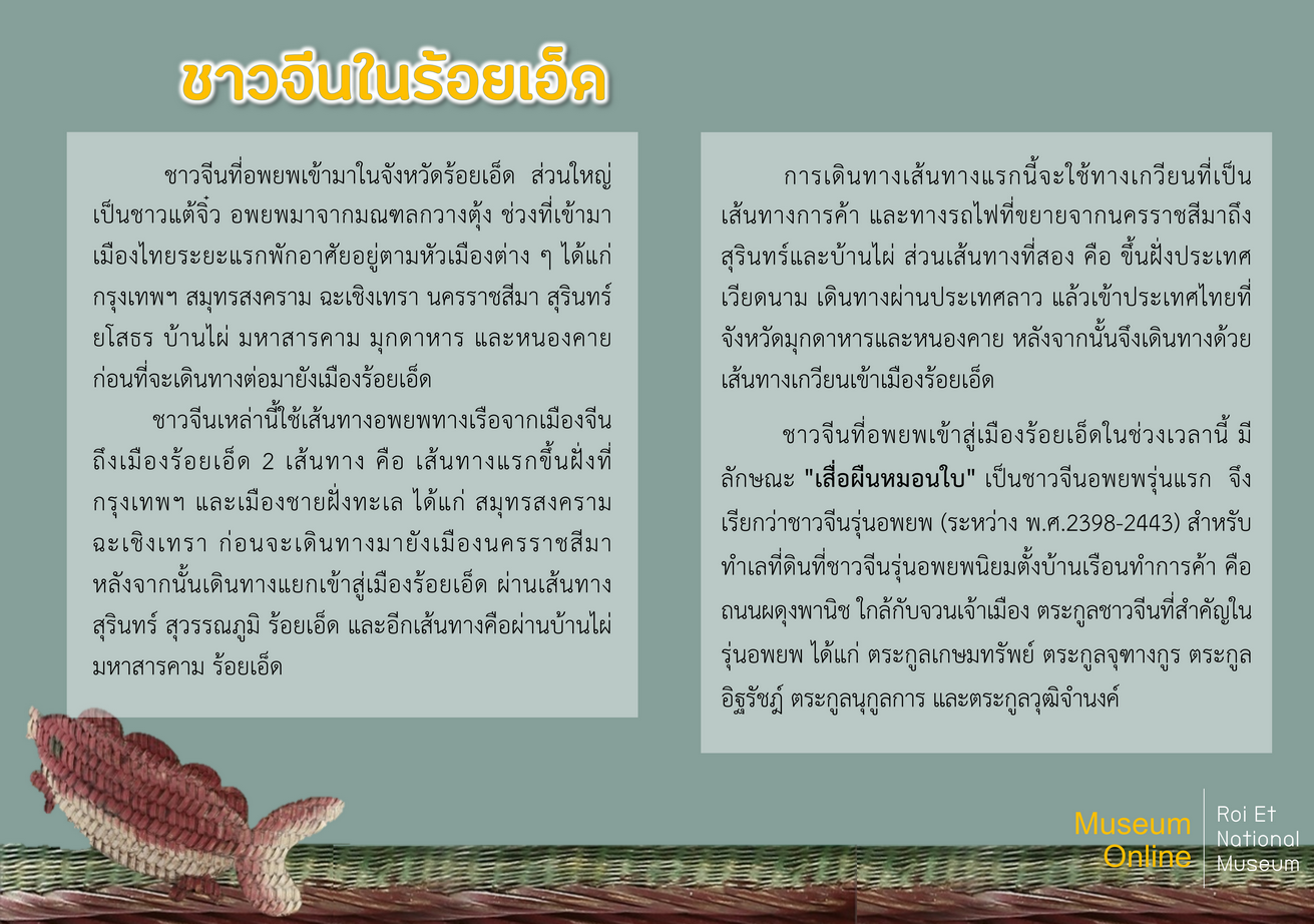 องค์ความรู้จากพิพิธภัณฑสถานแห่งชาติ ร้อยเอ็ด เรื่อง ข้าวของเครื่องใช้ชาวจีนที่อพยพเข้ามาในจังหวัดร้อยเอ็ด (ฮวยน้า ฉีน้า เสี่ยหนา)