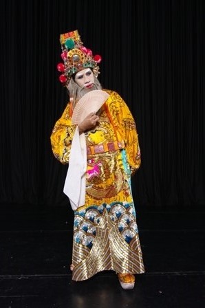 ขณะที่พระเจ้ากรุงจีนแสดงท่าทางก็จะใช้พัดปิดบังใบหน้าด้วยความโศกเศร้าเสียใจ ในบทที่กล่าวถึงความมัวหมองไม่ผ่องใส สุดแสน อัปยศ สลดใจ คิดอาลัย ทหาร ชาญสงคราม และเมื่อเดินเข้าเวทีก็ยังใช้พัดปิดบังใบหน้าบ้างบางช่วง แสดงถึงความโศกเศร้าสลดใจ