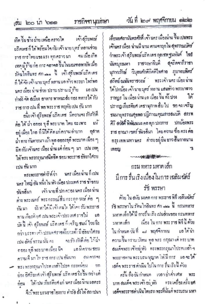 พระสุพรรณบัฏสถาปนาเจ้าสุริยพงษ์ผริตเดชเป็นพระเจ้านครน่าน