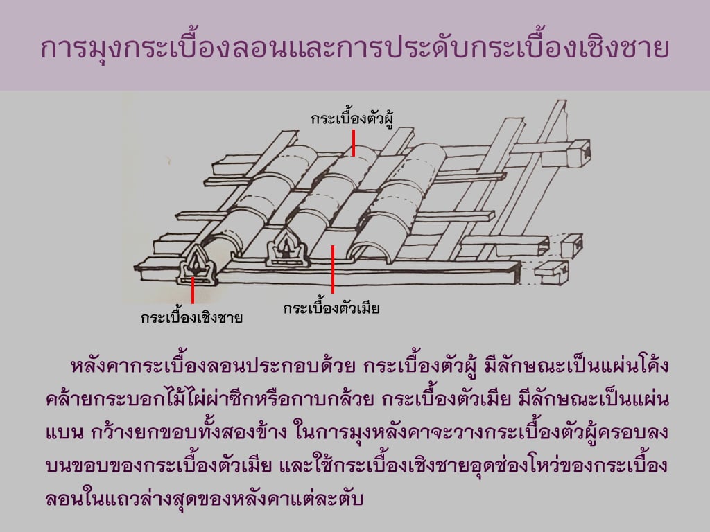 บรรณานุกรม - ประทีป เพ็งตะโก. “กระเบื้องเชิงชายสมัยอยุธยา.” วิทยานิพนธ์ปริญญาศิลปศาสตร์มหาบัณฑิต สาขาวิชาประวัติศาสตร์ศิลปะ บัณฑิตวิทยาลัย มหาวิทยาลัยศิลปากร. ๒๕๔๐. - วิบูลย์ ลี้สุวรรณ. พจนานุกรมศัพท์ศิลปกรรมไทย. นนทบุรี : เมืองโบราณ, ๒๕๕๙. - สันติ เล็กสุขุม. งานช่าง คำช่างโบราณ. กรุงเทพฯ : มติชน, ๒๕๕๗.