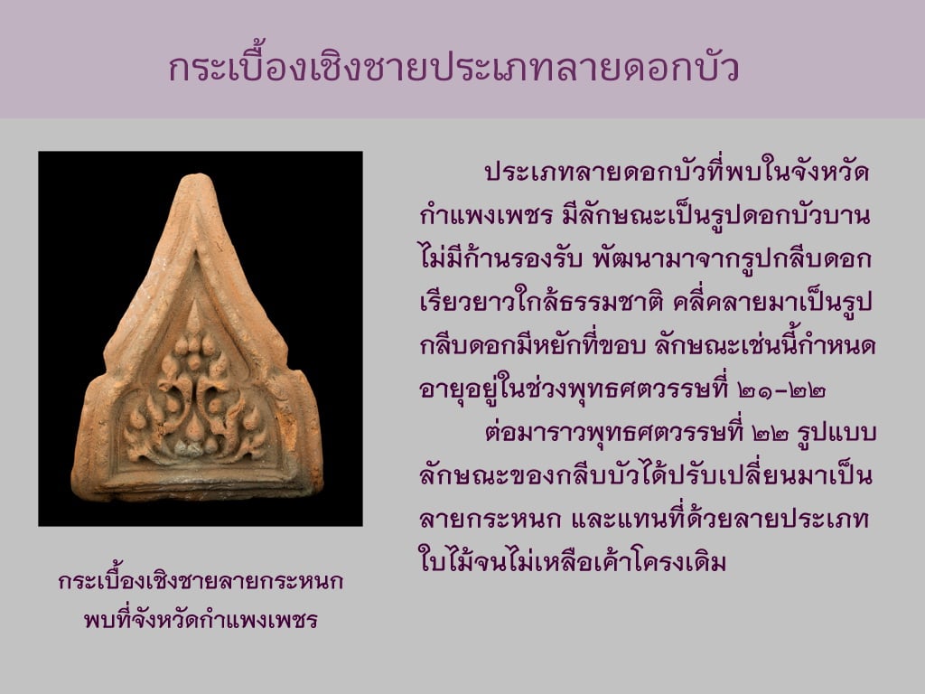 ที่มาของข้อมูล : พิพิธภัณฑสถานแห่งชาติ กำแพงเพชร : Kamphaeng Phet National Museum https://www.facebook.com/kamphaengphetnationalmuseum/posts/3796695317123532