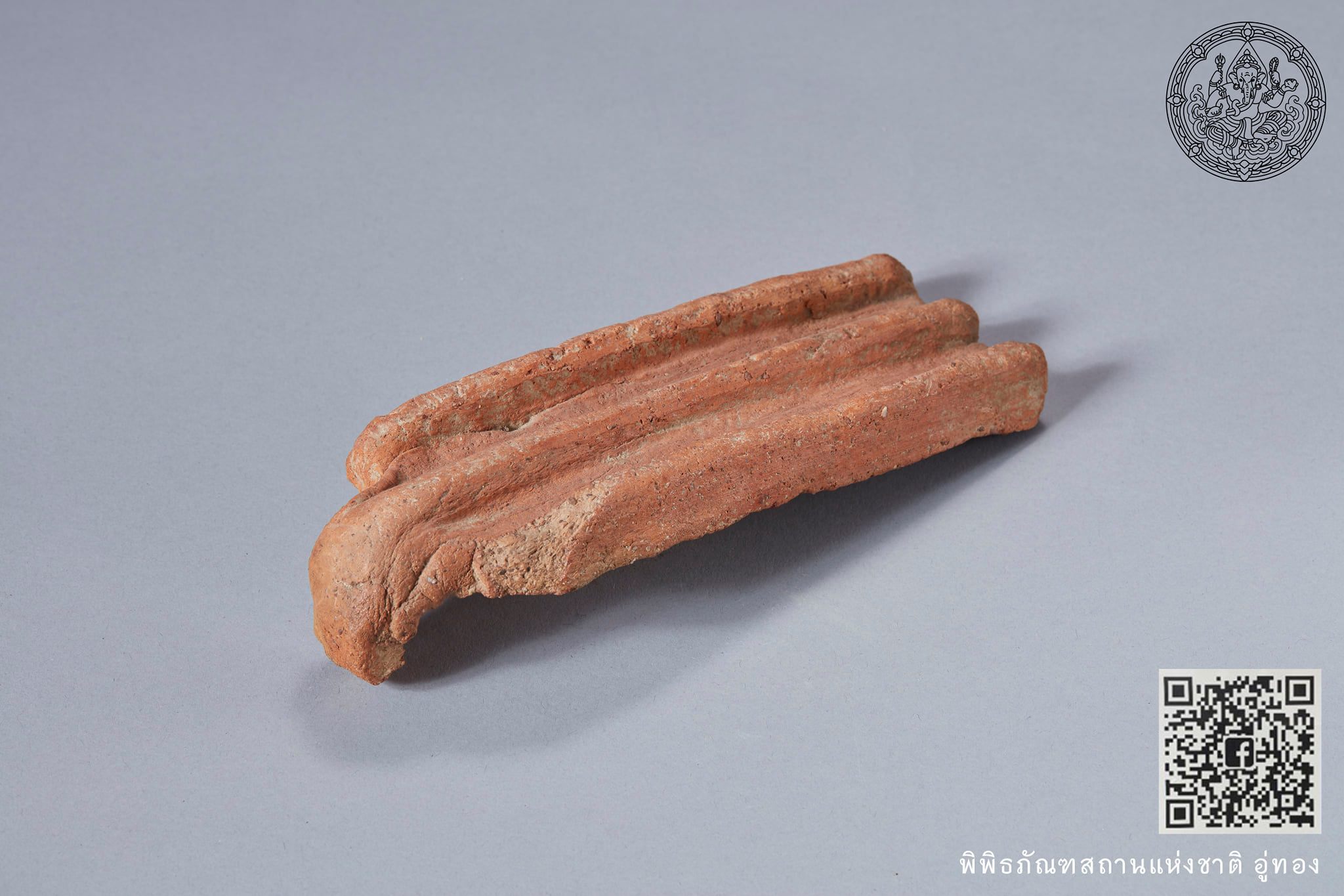 กระเบื้องมุงหลังคาแบบลอน พบในบริเวณเมืองโบราณอู่ทอง อำเภออู่ทอง จังหวัดสุพรรณบุรี จัดแสดง ณ ห้องอู่ทองศรีทวารวดี พิพิธภัณฑสถานแห่งชาติ อู่ทอง