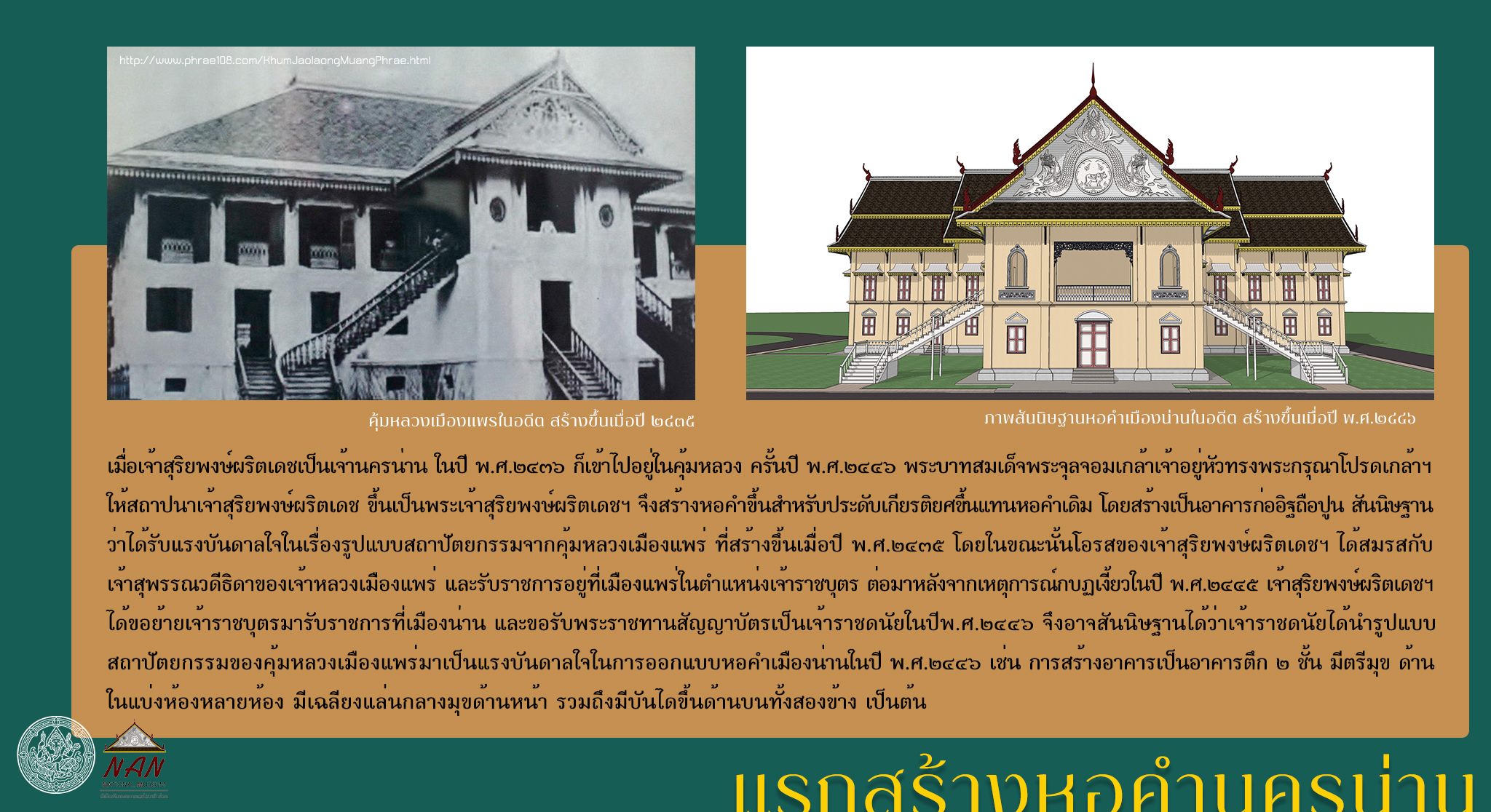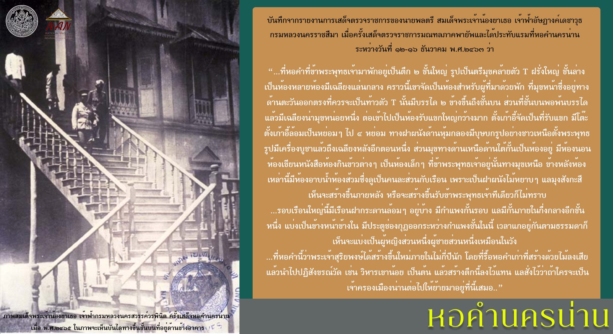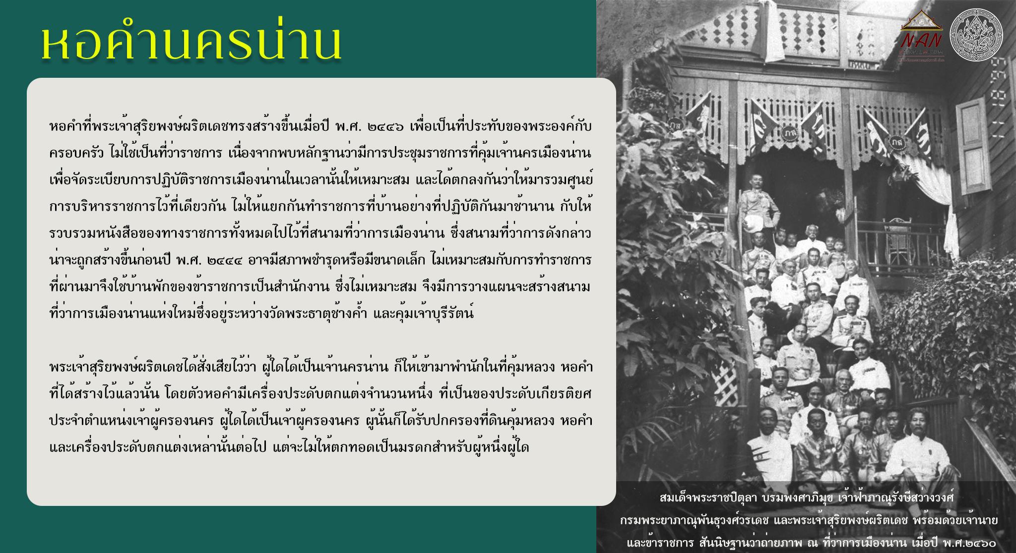 เรื่อง "หอคำนครน่าน : จากที่ประทับเจ้าผู้ครองนคร สู่ศาลากลางจังหวัด และพิพิธภัณฑสถานแห่งชาติ น่าน"