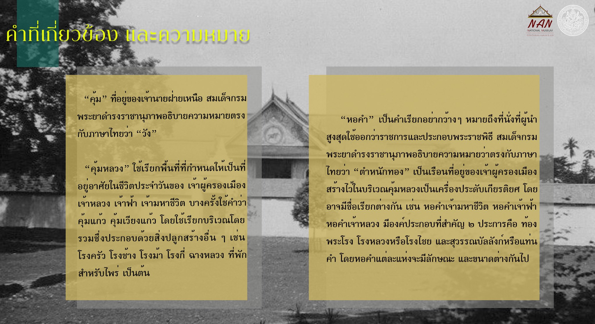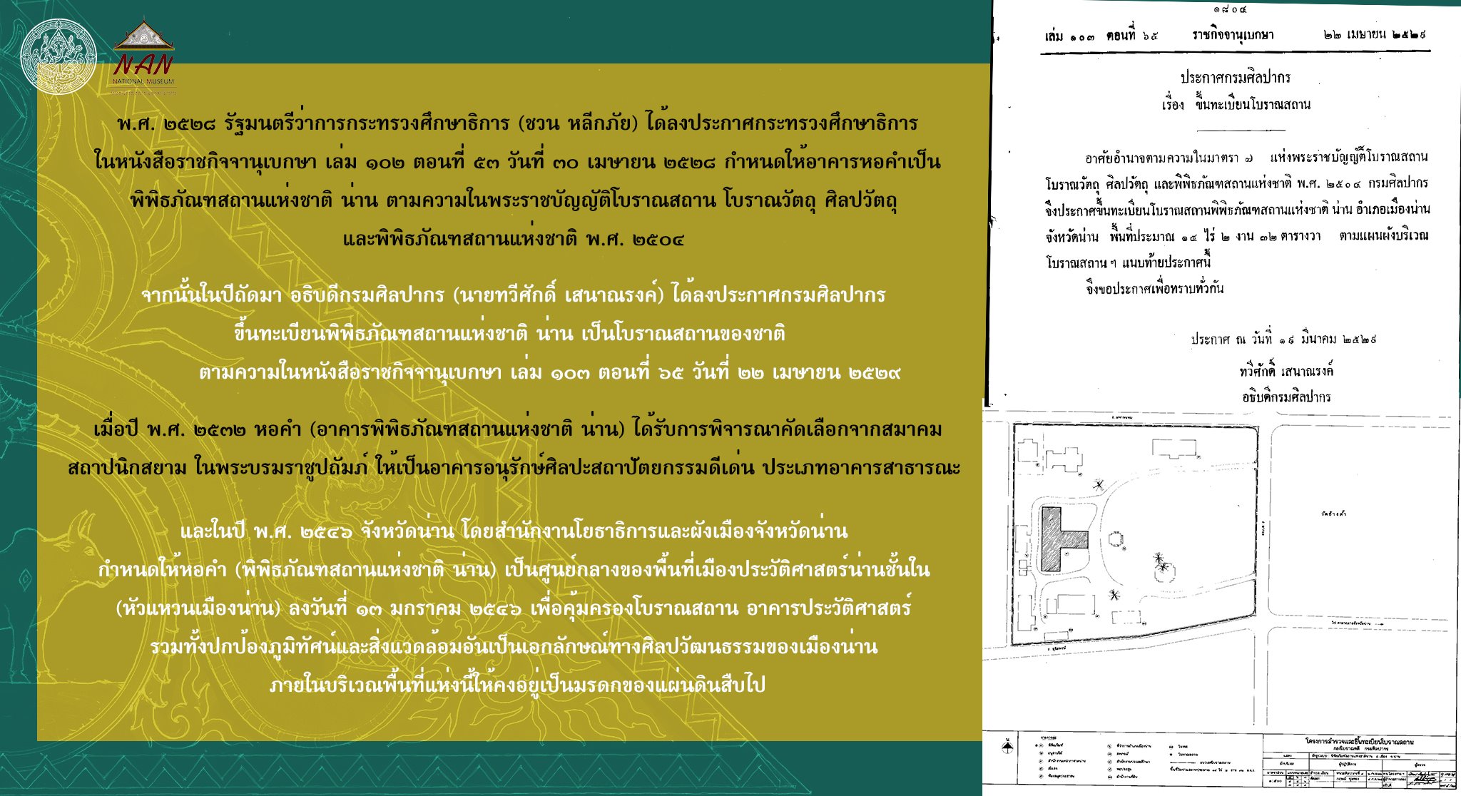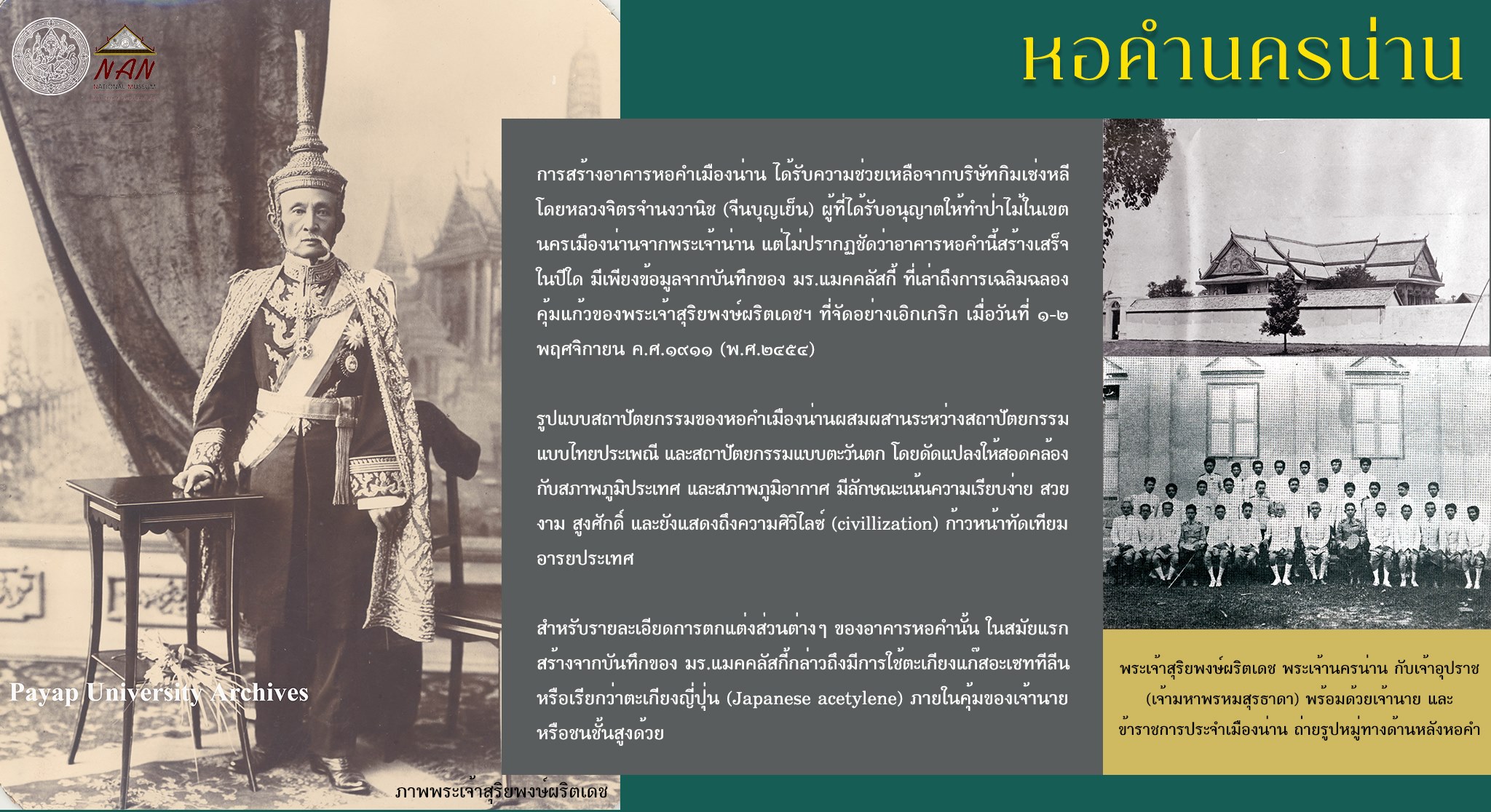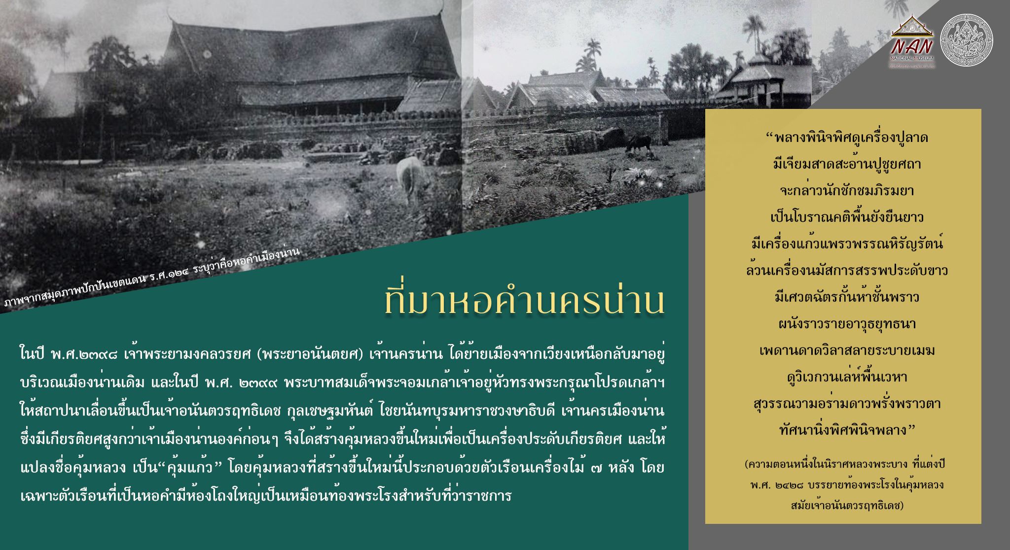 เรื่อง "หอคำนครน่าน : จากที่ประทับเจ้าผู้ครองนคร สู่ศาลากลางจังหวัด และพิพิธภัณฑสถานแห่งชาติ น่าน"