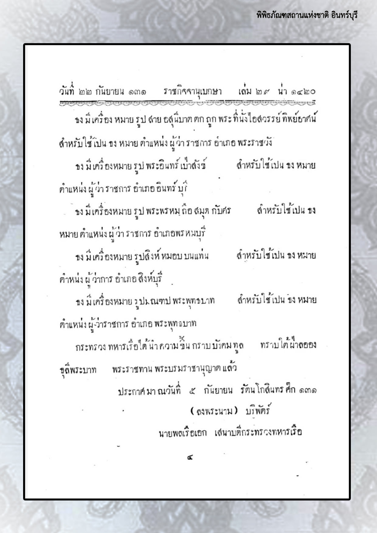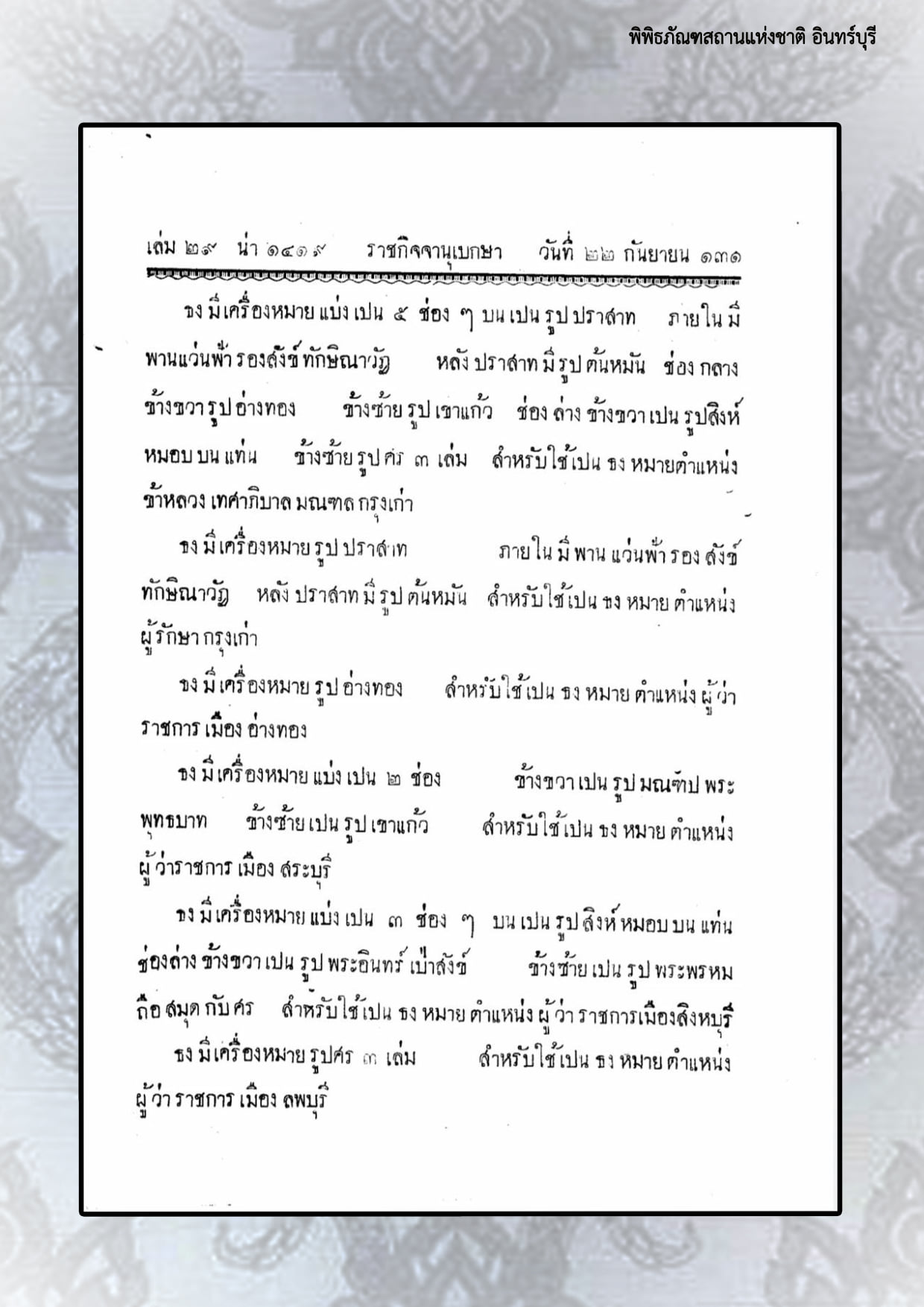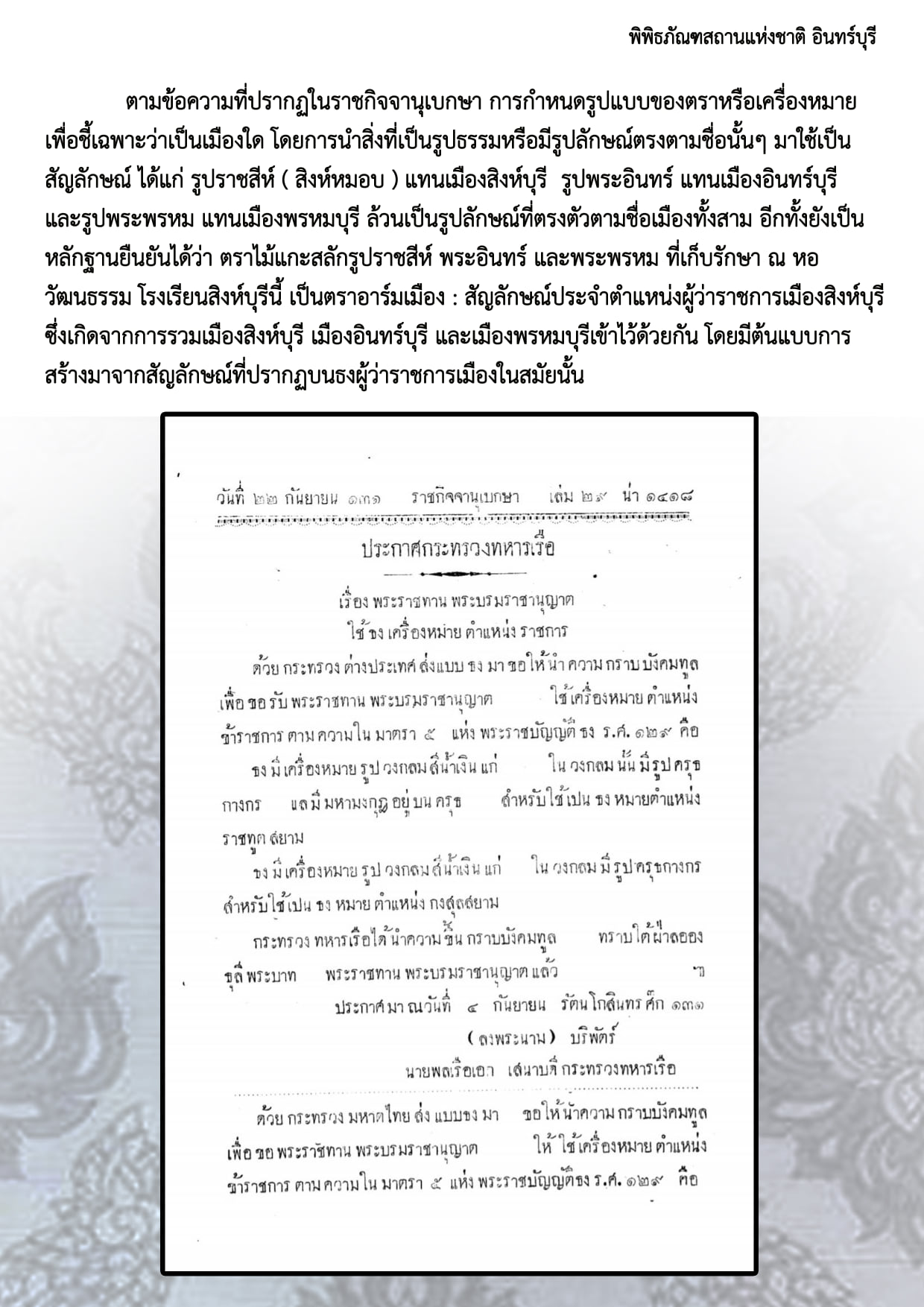 องค์ความรู้จากพิพิธภัณฑสถานแห่งชาติ อินทร์บุรี เรื่อง ตราอาร์มเมืองสิงห์บุรี