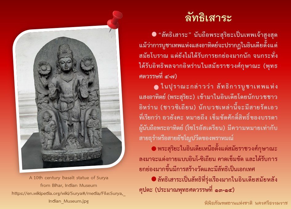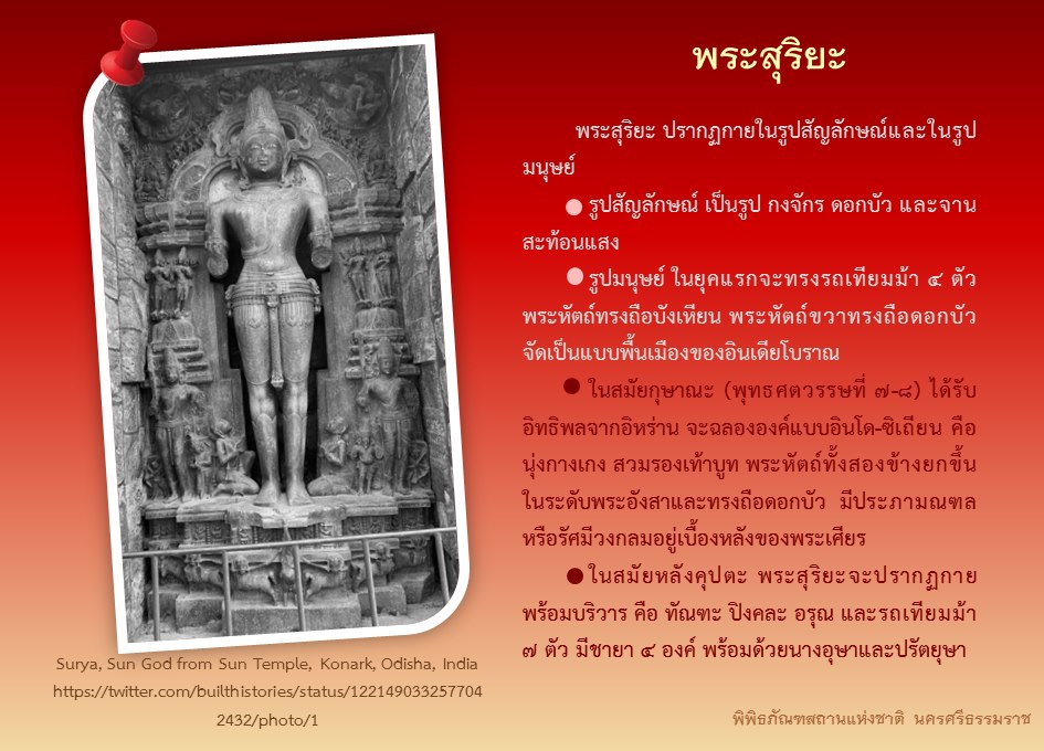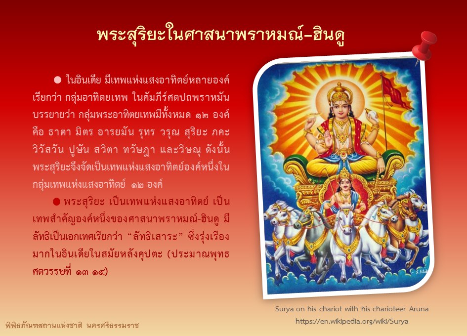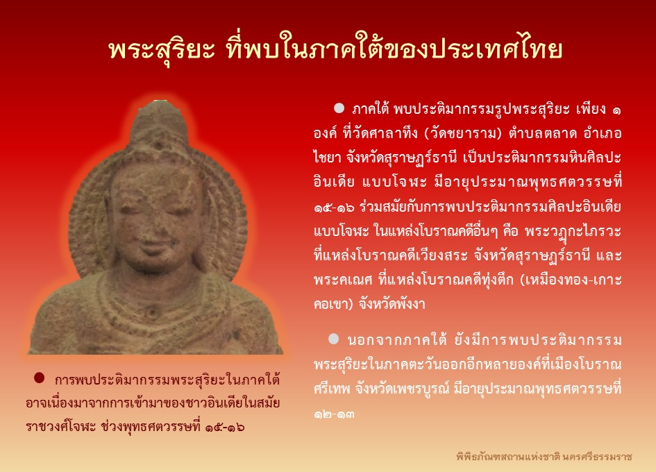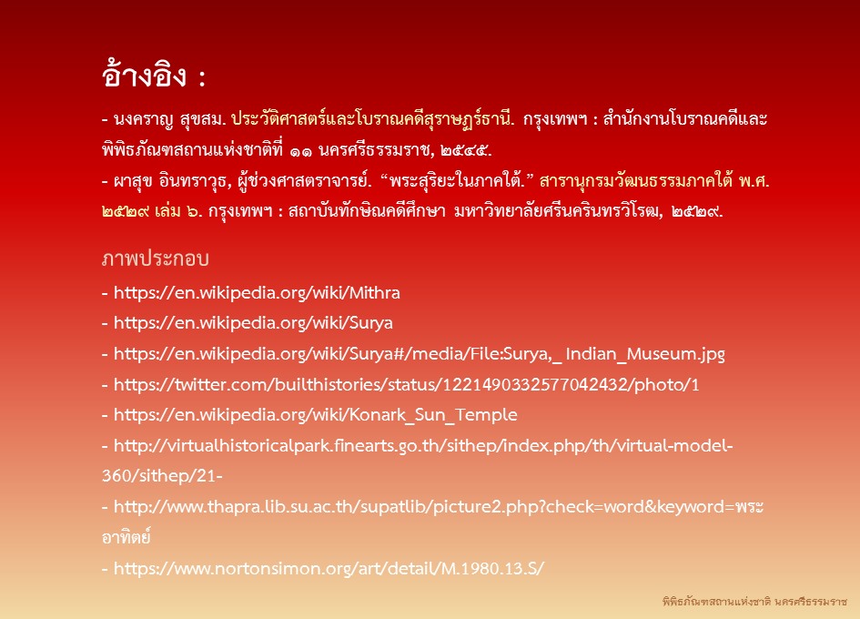 องค์ความรู้จากพิพิธภัณฑสถานแห่งชาติ นครศรีธรรมราช เรื่อง ชุดความรู้ทางวิชาการ : หลักฐานศาสนาพราหมณ์-ฮินดูในภาคใต้ของประเทศไทย ตอน พระสุริยะที่พบในภาคใต้