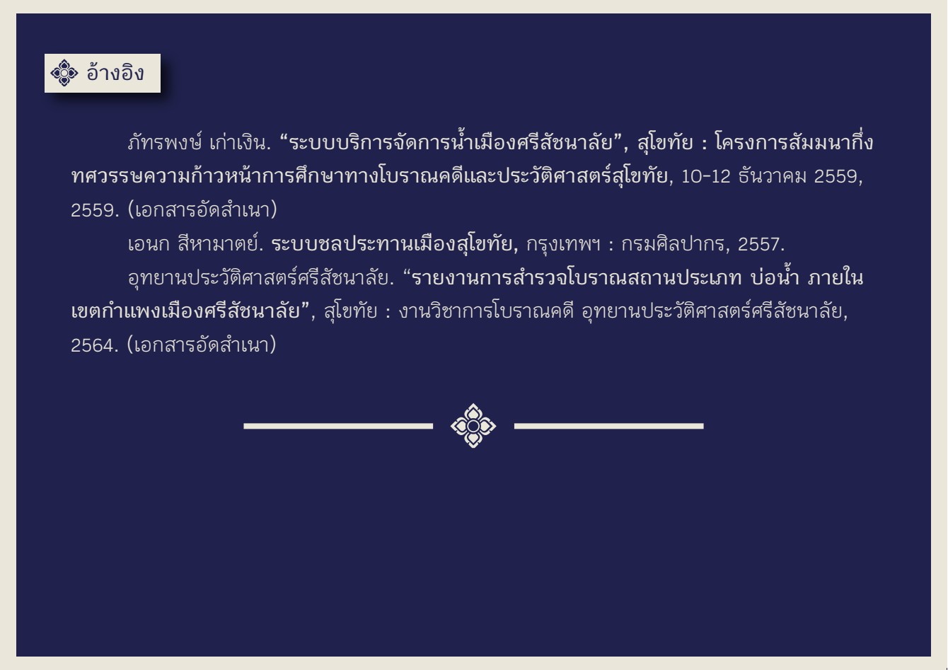 องค์ความรู้จากอุทยานประวัติศาสตร์ศรีสัชนาลัย จังหวัดสุโขทัยเรื่อง บ่อน้ำในเมืองศรีสัชนาลัย