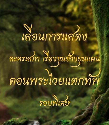 สำนักการสังคีต แจ้งเลื่อนการแสดงละครเสภา เรื่องขุนช้างขุนแผน ตอนพระไวยแตกทัพ รอบพิเศษ