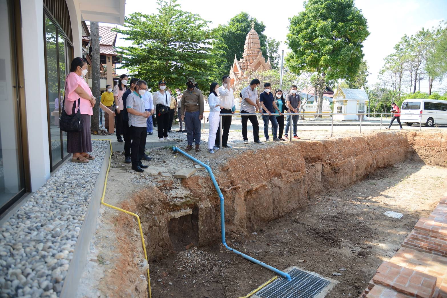 จากนั้นเวลา ๑๔.๐๐ น. อธิบดีกรมศิลปากรพร้อมคณะ ลงพื้นที่ตรวจโครงการบูรณะเจดีย์ทรงปรางค์ วัดไตรภูมิ จังหวัดเพชรบูรณ์ พร้อมมอบแนวทางในการปรับปรุงการทำผนังดิน คันกั้นน้ำ ปรับปรุงระบบการระบายน้ำให้ดีขึ้น เพื่อไม่ให้ส่งผลกระทบต่อตัวโบราณสถานในอนาคต