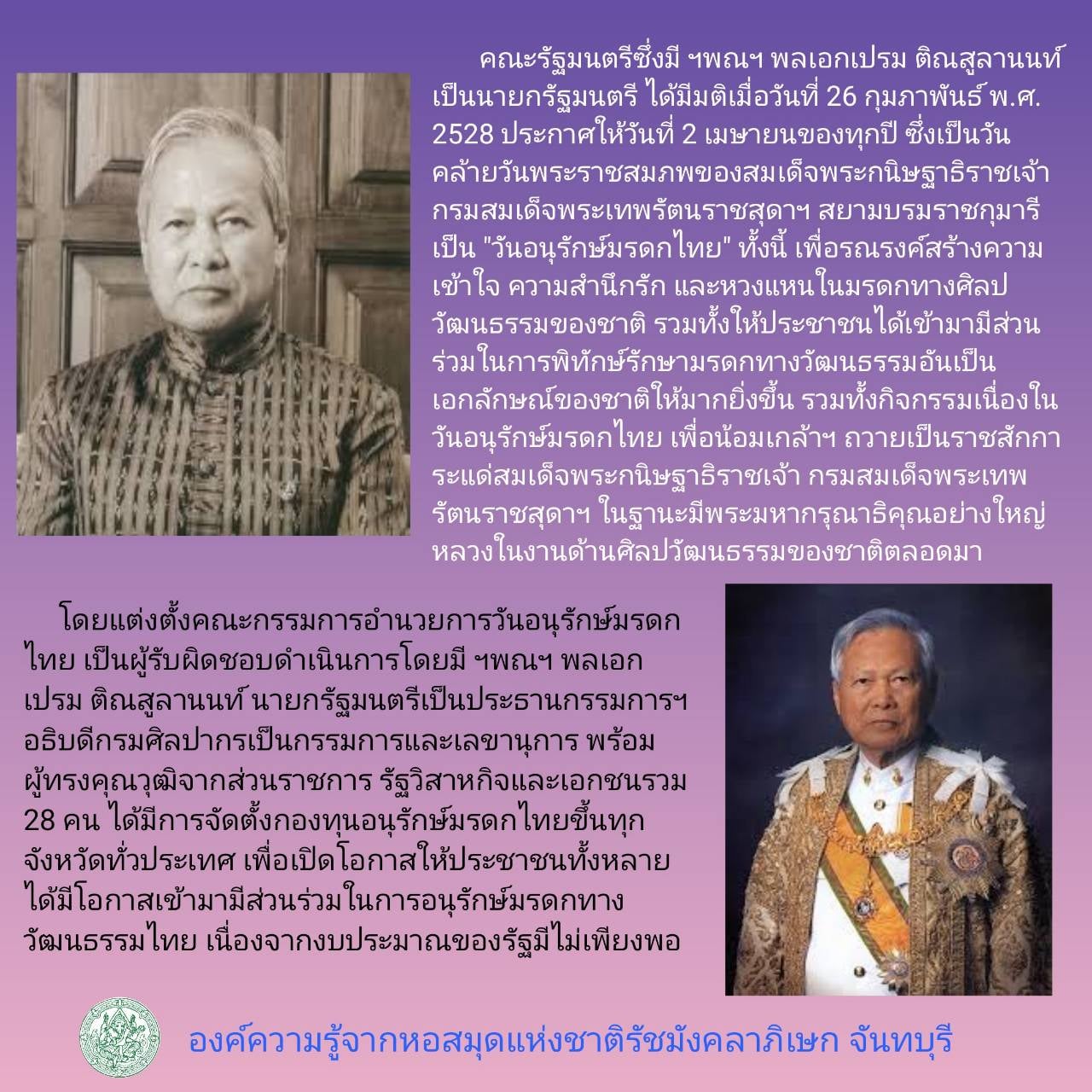 เรื่อง “วันอนุรักษ์มรดกไทย 2 เมษายน”