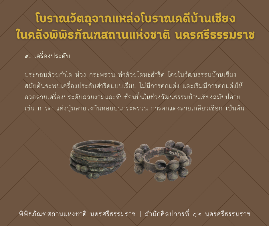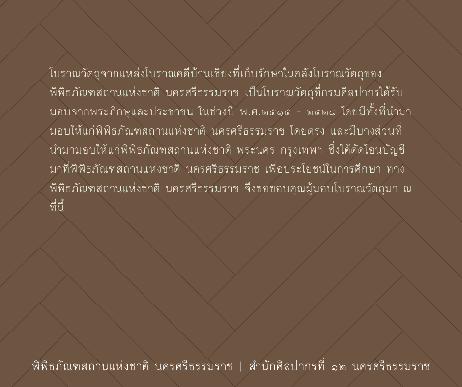 เรื่องเล่าจากคลังโบราณวัตถุ : โบราณวัตถุจากแหล่งโบราณคดีบ้านเชียงในคลังพิพิธภัณฑสถานแห่งชาติ นครศรีธรรมราช
