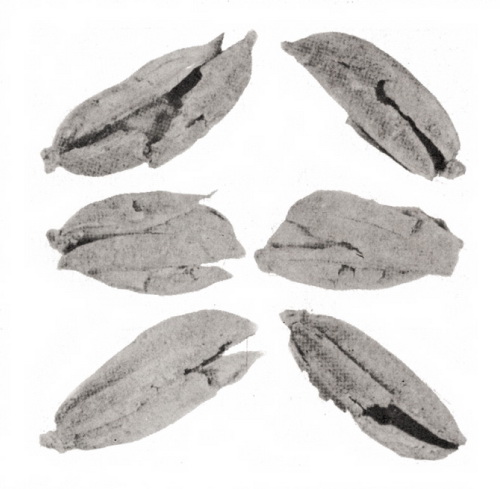 ภาพ: เมล็ดข้าวพบภายในถ้ำปุงฮุง จังหวัดแม่ฮ่องสอน ยุคก่อนประวัติศาสตร์ สมัยหินกลาง อายุประมาณ ๗,๐๐๐ ปีมาแล้ว ที่มา: “Hoabinhian Horticulture : The Evidence and the Question From Northwest THAILAND”.