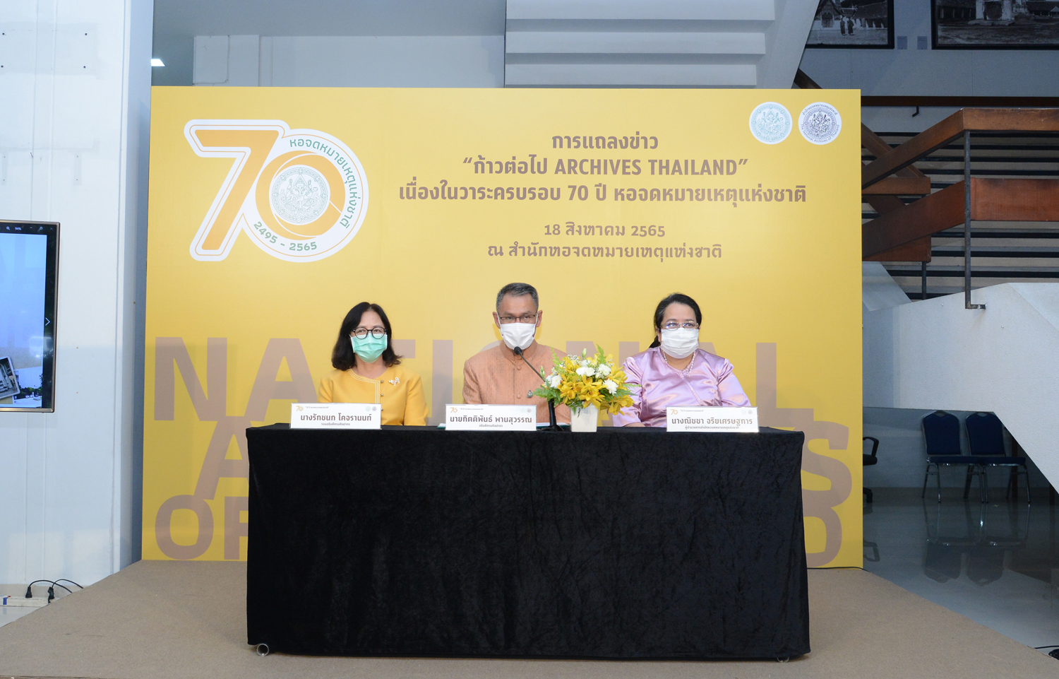 วันนี้ (วันพฤหัสบดีที่ ๑๘ สิงหาคม ๒๕๖๕) เวลา ๑๓.๐๐ น. นายกิตติพันธ์ พานสุวรรณ อธิบดีกรมศิลปากร เป็นประธานในการแถลงข่าว “ก้าวต่อไป ARCHIVES THAILAND เนื่องในวาระครบรอบ ๗๐ ปี หอจดหมายเหตุแห่งชาติ” และเปิดนิทรรศการ “๗๐ ปี หอจดหมายเหตุแห่งชาติ” ณ สำนักหอจดหมายเหตุแห่งชาติ เขตดุสิต กรุงเทพฯ