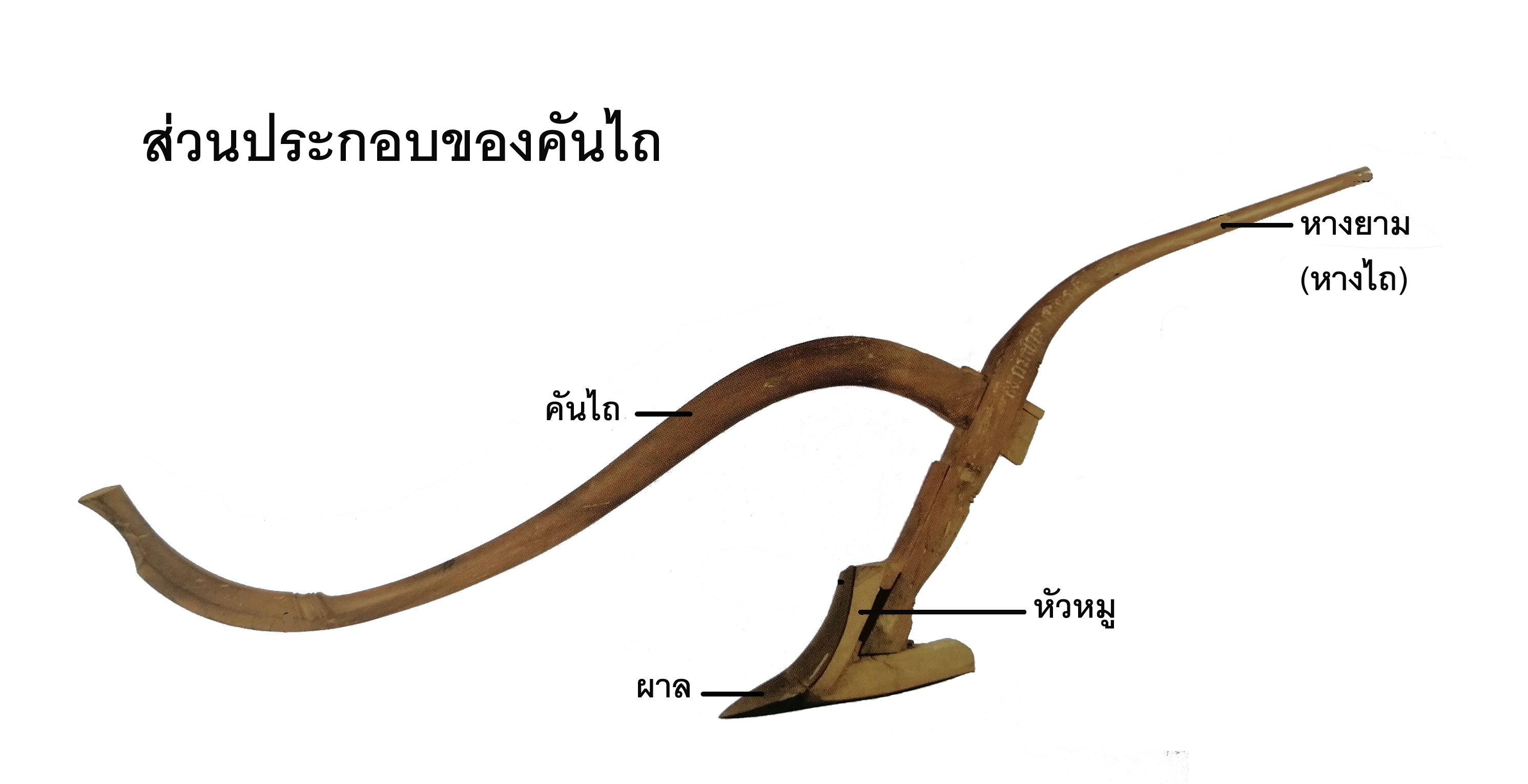 เครื่องมือที่ใช้ในการไถนาหรือพรวนดินในที่นา เรียกกันว่า “คันไถ” ประกอบด้วย 3 ส่วนหลัก ได้แก่ ตัวคันไถ หางยาม (หางไถ) และหัวหมู ทำด้วยไม้เนื้อแข็งและประกอบเข้าด้วยกันโดยการต่อเข้าลิ่ม