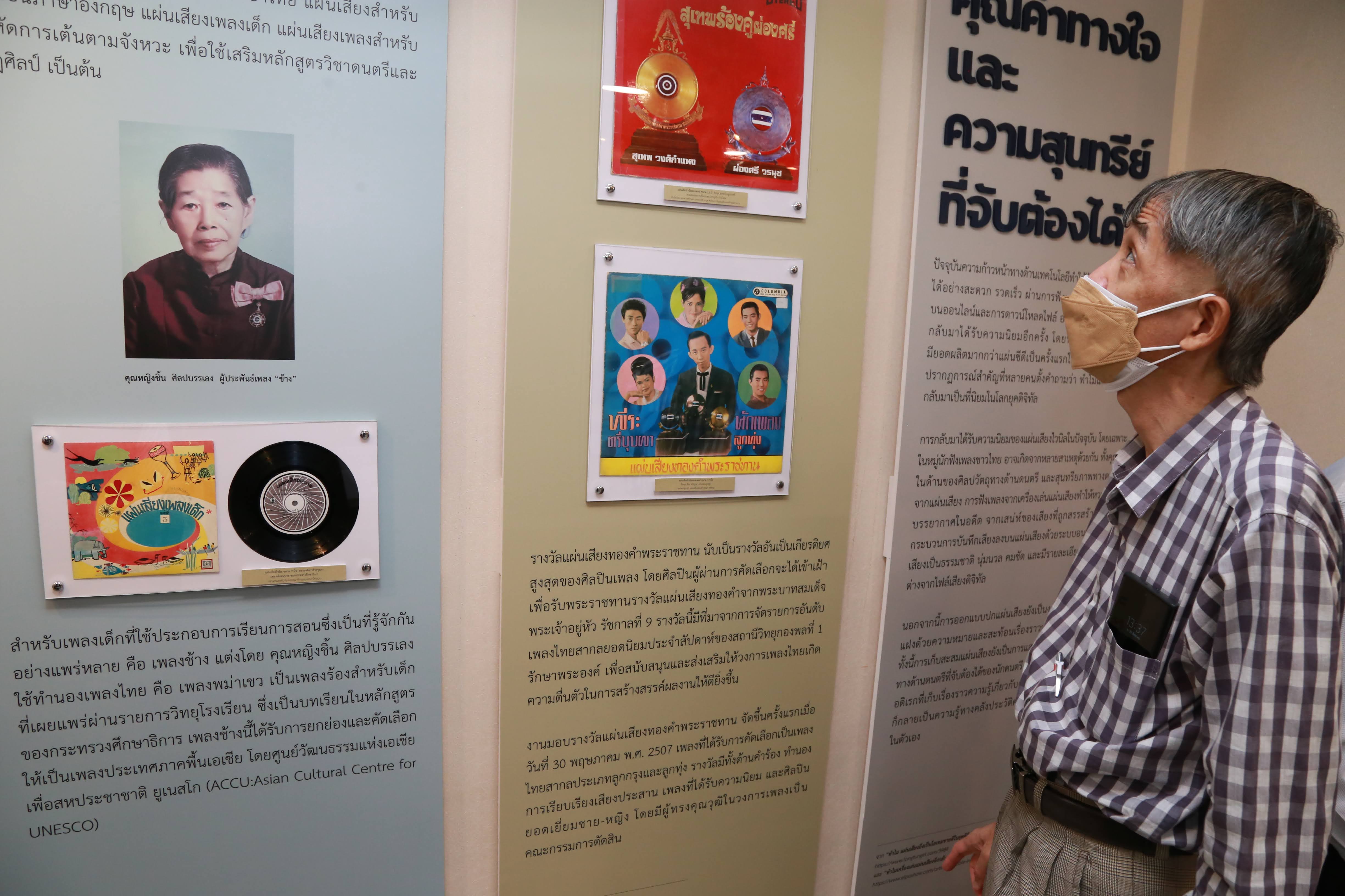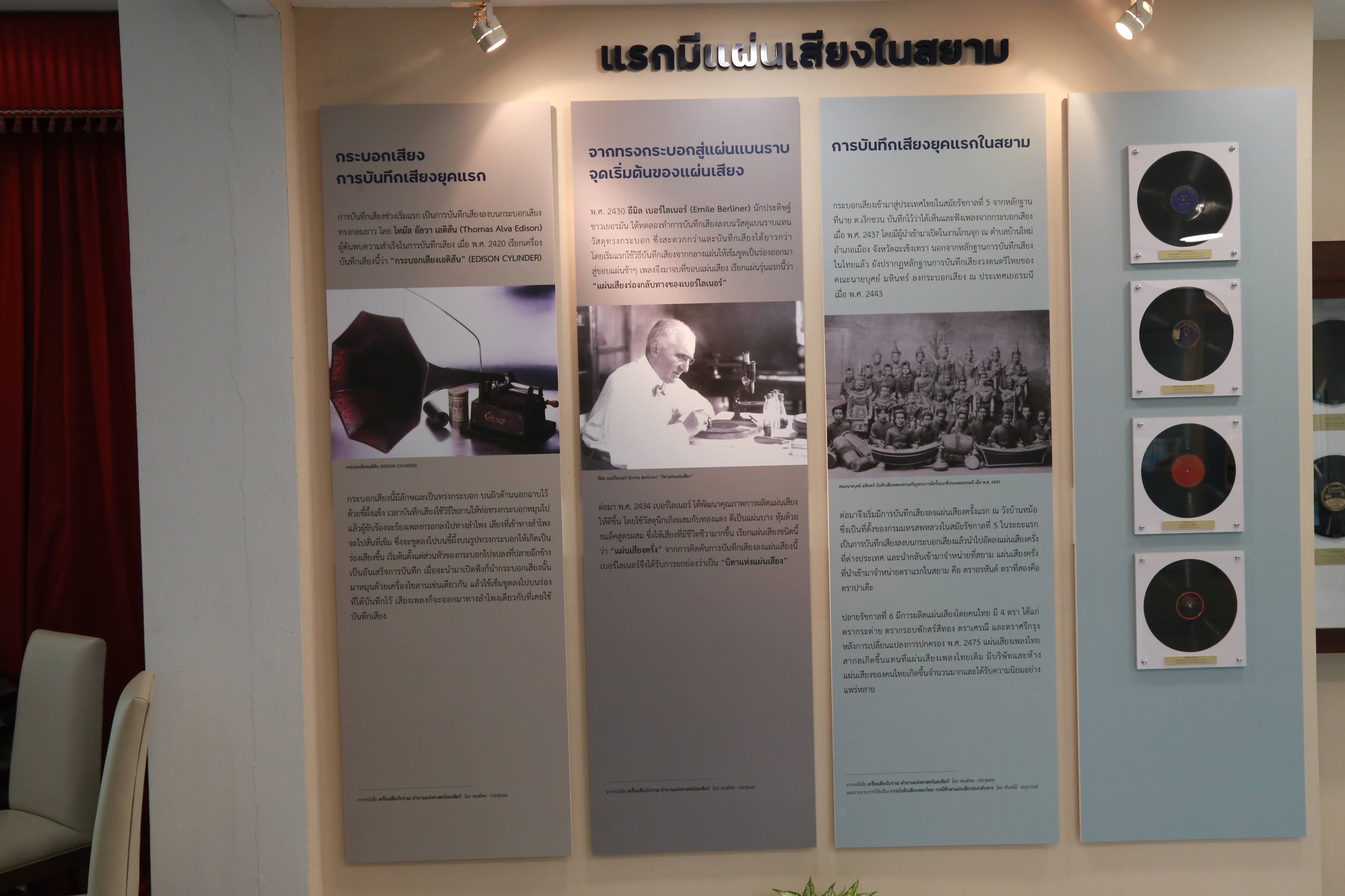 ภายในนิทรรศการจัดแสดงกระบอกเสียงและแผ่นเสียงหายาก เช่น กระบอกเสียงของเอดิสันแผ่นเสียงครั่งในสมัยรัชกาลที่ ๕ แผ่นเสียงครั่งร่องกลับทางของปาเต๊ะ ซึ่งเป็นแผ่นเสียงชนิดพิเศษและหายาก แผ่นเสียงไวนิลแบบต่างๆ ที่จัดทำขึ้นพิเศษ แผ่นเสียงเพลงพระราชนิพนธ์ที่บันทึกครั้งแรก แผ่นเสียงเพลงชาติในยุคแรกหลังเปลี่ยนแปลงการปกครอง และแผ่นเสียงเพลงไทยของกรมศิลปากร ฯลฯ นอกจากนี้ยังจัดแสดงปกแผ่นเสียงไวนิลสวยงามของศิลปินที่มีชื่อเสียง และเครื่องเล่นแผ่นเสียงในยุคต่างๆ ทั้งนี้ผู้เข้าชมนิทรรศการสามารถเพลิดเพลินกับเสียงเพลงจากแผ่นเสียงเก่า ถ่ายภาพกับเครื่องเล่นแผ่นเสียงโบราณ และร่วมกิจกรรม Sleeveface จากปกแผ่นเสียง