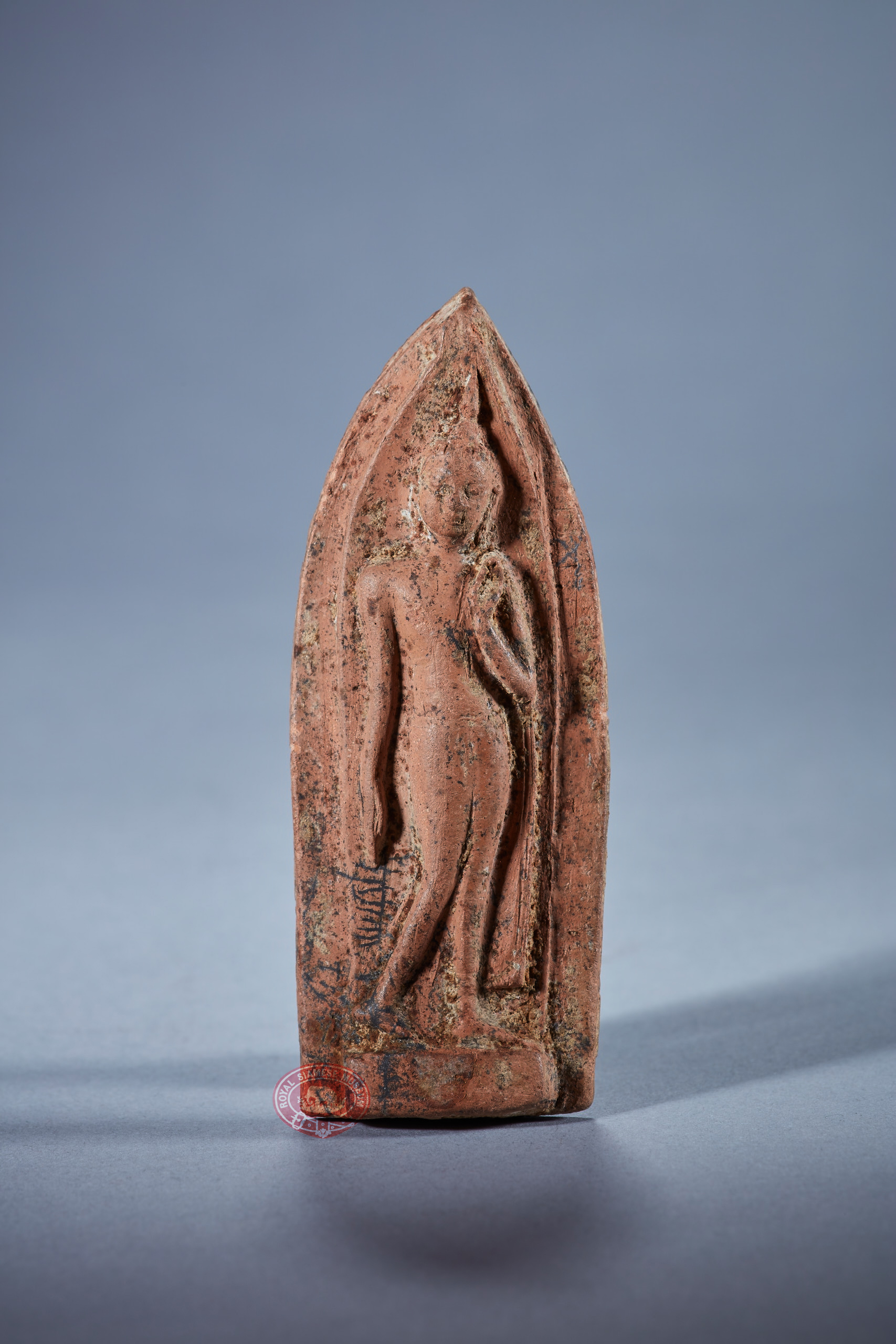 พระพิมพ์ลีลาสมัยสุโขทัย จากกรุที่มุมกำแพงแก้ว วิหารพระอัฏฐารส โบราณสถานวัดสะพานหิน