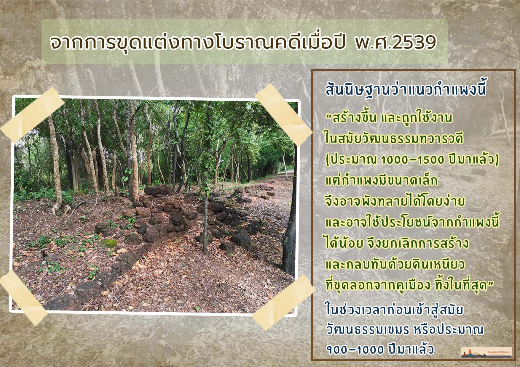 ทราบกันหรือไม่ว่า.... ที่เมืองโบราณศรีเทพยังมีการพบแนวกำแพงโบราณบนคันดินคูเมืองด้วย ซึ่งถือว่าเป็นเมืองโบราณในยุคทวารวดีที่เดียวที่ยังหลงเหลือหลักฐานอยู่