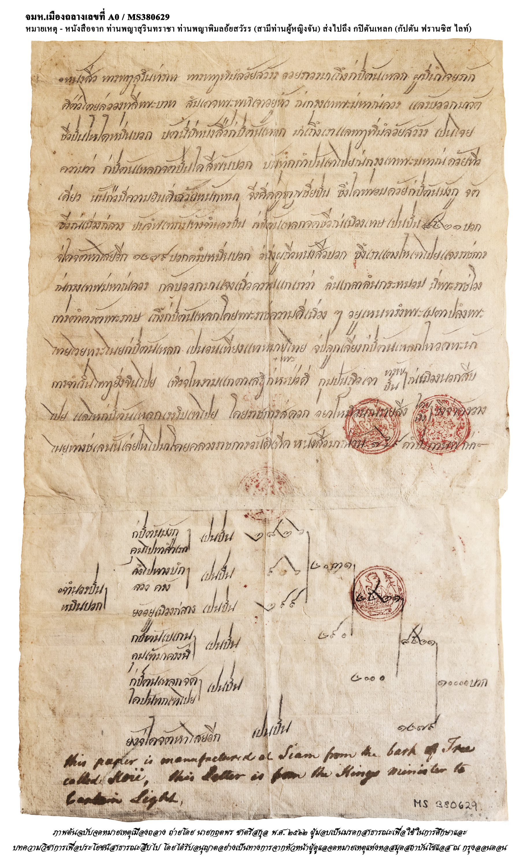 นิทรรศการนี้จัดแสดงเนื้อหาเกี่ยวกับการค้าของเมืองถลาง และสำเนาจดหมายการติดต่อกันระหว่างเจ้าเมืองและขุนนางเมืองถลางและเมืองใกล้เคียง กับพระยาราชกปิตันผู้สำเร็จราชการเกาะปีนัง หรือกัปตันฟรานซิสไล้ท์ กัปตันเรือสังกัดบริษัทอินเดียตะวันออกของอังกฤษ ที่มีบทบาทสำคัญต่อการค้าในพื้นที่ทะเลอันดามัน และเป็นผู้บุกเบิกการตั้งอาณานิคมบนเกาะปีนัง ในช่วงกรุงธนบุรีถึงต้นกรุงรัตนโกสินทร์ จดหมายได้รับการรวบรวมโดยนายวิลเลียม มาร์สเดน (William Marsden) ผู้เชี่ยวชาญด้านตะวันออก และได้ถูกส่งให้วิทยาลัยบูรพคดีศึกษาและการศึกษาแอฟริกา (SOAS) มหาวิทยาลัยลอนดอน ใน ค.ศ.๑๙๑๖