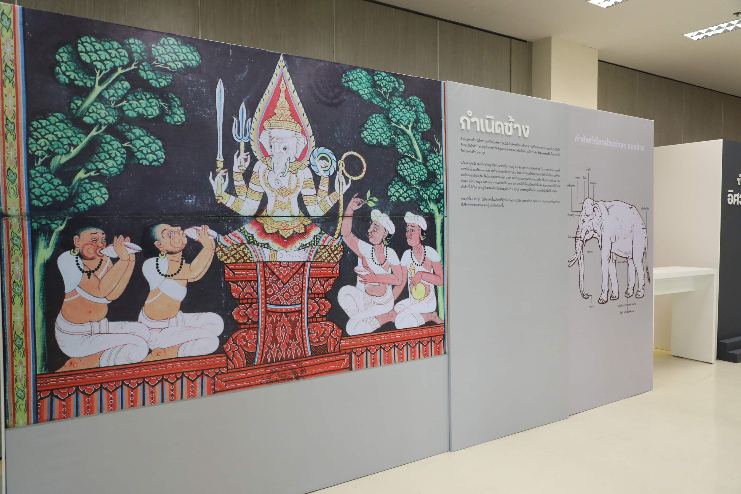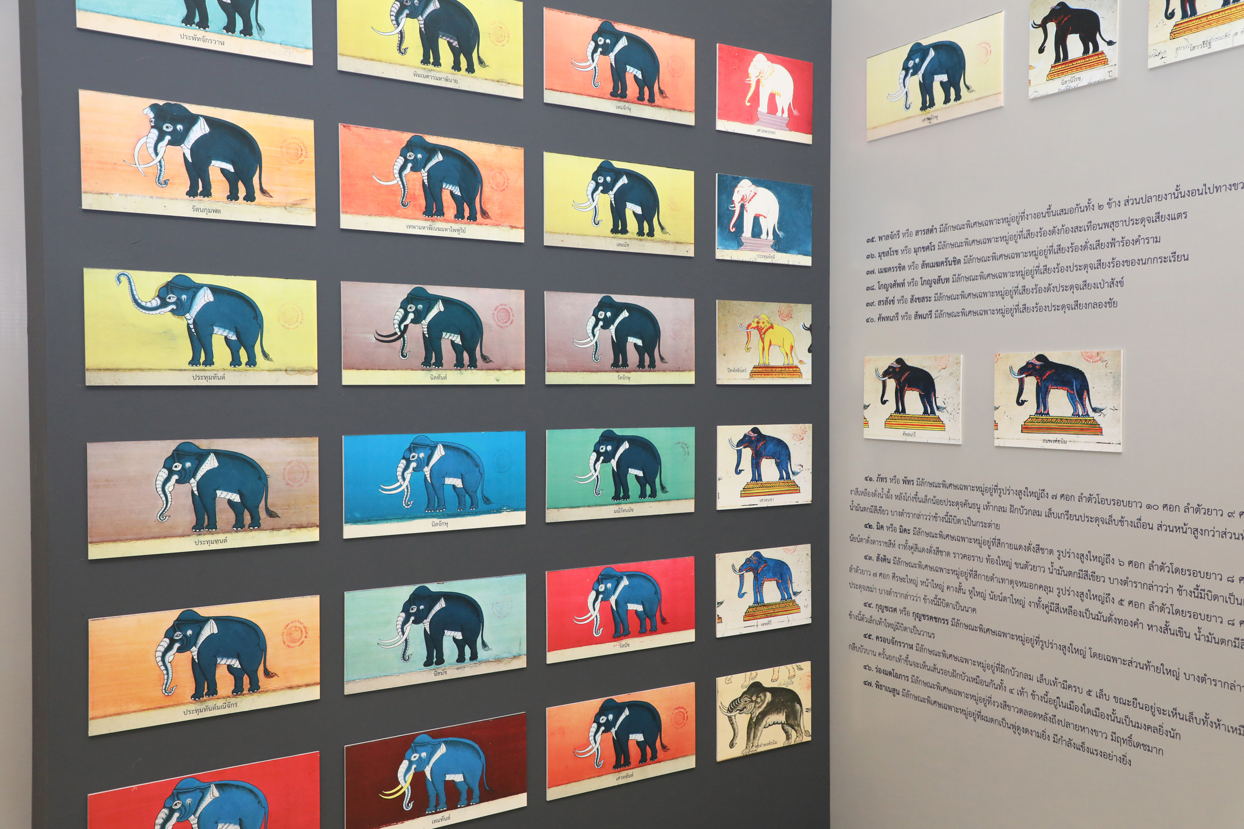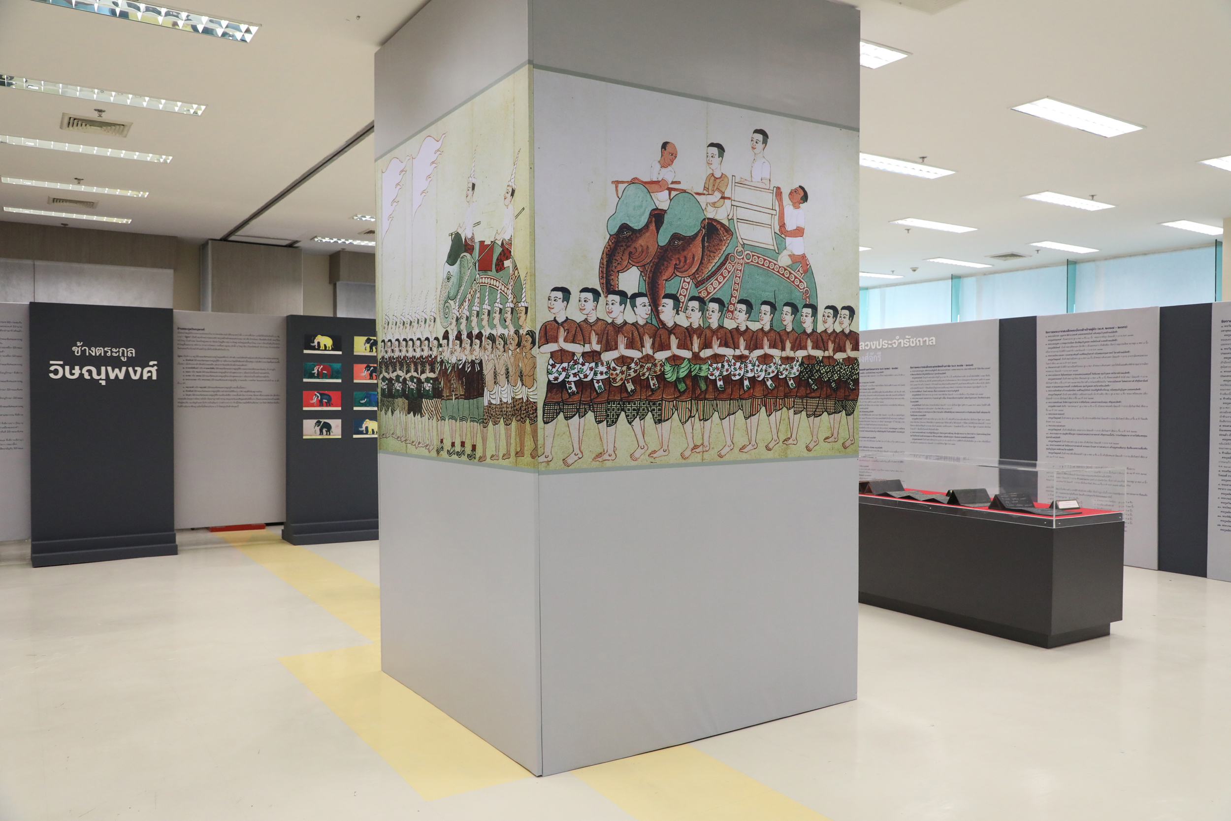 นิทรรศการ เรื่อง ช้างมงคล มีเนื้อหานิทรรศการแบ่งออกเป็น ๕ ส่วน ได้แก่ ส่วนที่ ๑ นำเสนอความรู้เกี่ยวกับคำศัพท์ในสมัยโบราณที่ใช้เรียกอวัยวะส่วนต่างๆ ของช้าง ส่วนที่ ๒ จะเป็นความรู้เกี่ยวกับการกำเนิดของช้างมงคลตามตำราคชศาสตร์ที่ปรากฏในเอกสารโบราณว่าช้างศุภลักษณ์ หรือช้างที่มีลักษณะมงคล พร้อมทั้งมีภาพประกอบจากเอกสารโบราณ ซึ่งมีทั้งหมด ๔ ตระกูล คือ ๑. ช้างตระกูลอิศวรพงศ์ ๒. ช้างตระกูลพรหมพงศ์ ๓. ช้างตระกูลวิษณุพงศ์ ๔. ช้างตระกูลอัคนิพงศ์ ส่วนที่ ๓ ทำเนียบนามช้างหลวงประจำรัชกาลในราชวงศ์จักรี ตั้งแต่รัชกาลที่ ๑ - รัชกาลที่ ๙ พร้อมจัดแสดงเอกสารโบราณที่บันทึกทำเนียบนามช้างสำคัญในสมัยรัตนโกสินทร์ ส่วนที่ ๔ การเปรียบเทียบความแตกต่างลักษณะทางกายภาพและถิ่นฐานระหว่างช้างเอเชียและช้างแอฟริกา ส่วนที่ ๕ การนำเสนอสารคดีเรื่องช้างไทย และการเล่นเกมส์โชคช้าง เป็นการเสี่ยงทายจากตำราโบราณ เพื่อให้ผู้ที่เข้าชมนิทรรศการได้ร่วมสนุก