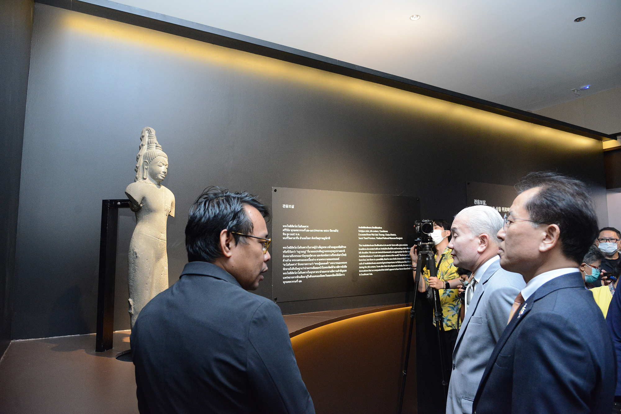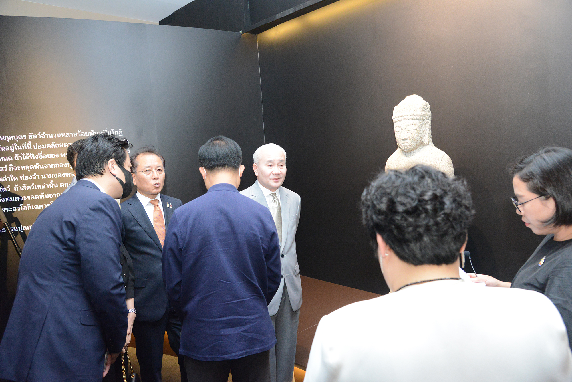 วันเสาร์ที่ ๑๙ พฤศจิกายน พุทธศักราช ๒๕๖๕ เวลา ๑๕.๐๐ น. นายพนมบุตร จันทรโชติ อธิบดีกรมศิลปากร เป็นประธานในพิธีเปิดนิทรรศการศิลปะเกาหลีในโลกเสมือนจริง A New Encounter : Immersive Gallery of Korean Art โดยมี นายสถาพร เที่ยงธรรม รองอธิบดีกรมศิลปากร กล่าวต้อนรับ และกล่าวถึงความร่วมมือทางวิชาการและแลกเปลี่ยนวัฒนธรรมร่วมกัน ระหว่างกรมศิลปากรและพิพิธภัณฑสถานแห่งชาติเกาหลี ซึ่งมีนายยูน ซัง ยอง ผู้อำนวยการใหญ่ พิพิธภัณฑสถานแห่งชาติเกาหลี แถลงถึงโครงการจัดแสดง และนายโจ แจอิล ผู้อำนวยการศูนย์วัฒนธรรมเกาหลีประจำประเทศไทย กล่าวแสดงความยินดี จากนั้นเยี่ยมชมนิทรรศการศิลปะเกาหลีในโลกเสหมือนจริง A New Encounter : Immersive Gallery of Korean Art ณ อาคารมหาสุรสิงหนาท ห้อง ๔๐๑ พิพิธภัณฑสถานแห่งชาติ พระนคร
