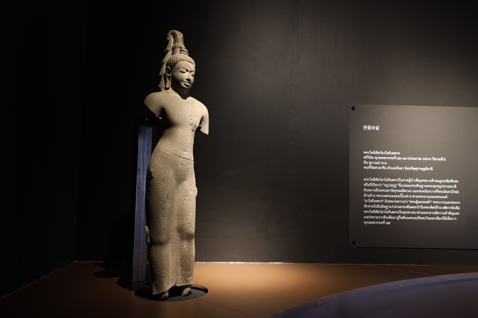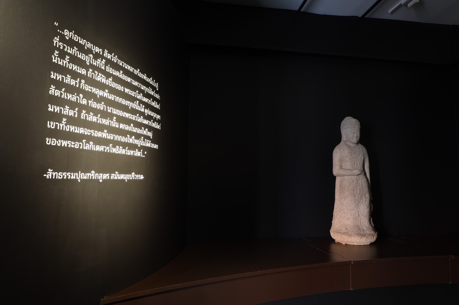 ๒. การจัดแสดงประติมากรรมพระโพธิสัตว์อวโลกิเตศวร ๒ องค์ รูปบุคลาธิษฐานของความปรารถนาอันแรงกล้าที่จะช่วยเหลือมวลมนุษย์ สะท้อนถึงความศรัทธาในพุทธศาสนาในอดีตของเกาหลีและไทย แม้รูปลักษณ์ ช่วงเวลาที่สร้าง และฝีมือช่างแตกต่างกัน แต่รูปเคารพทั้งสองต่างก็สื่อสะท้อนถึงผู้ที่เต็มเปี่ยมไปด้วยความเมตตาที่จะช่วยเหลือมวลมนุษย์ให้พ้นจากความทุกข์ โดยประติมากรรมพระโพธิสัตว์อวโลกิเตศวรศิลปะเกาหลี สร้างขึ้นเมื่อพุทธศตวรรษที่ ๑๔ ขุดพบที่วัดพงฮวังซา เมืองคยองจู สาธารณรัฐเกาหลี ส่วนพระโพธิสัตว์ อวโลกิเตศวรของไทย ศิลปะศรีวิชัย พุทธศตวรรษที่ ๑๒ – ๑๓ พบที่ วัดศาลาทึง อำเภอไชยา จังหวัดสุราษฏร์ธานี