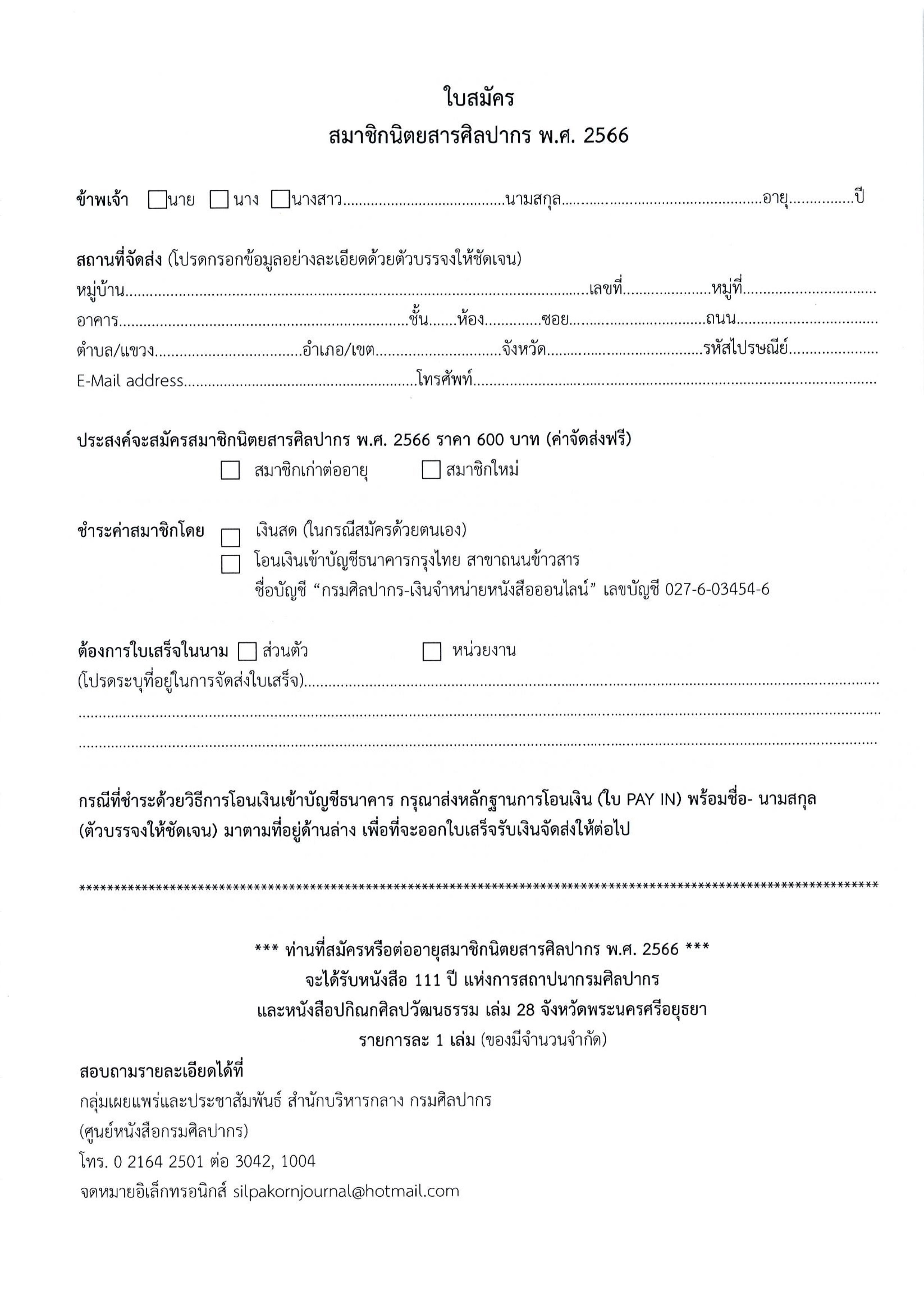 ดาวน์โหลดไฟล์: ใบสมัครสมาชิกนิตยสารศิลปากร.jpeg