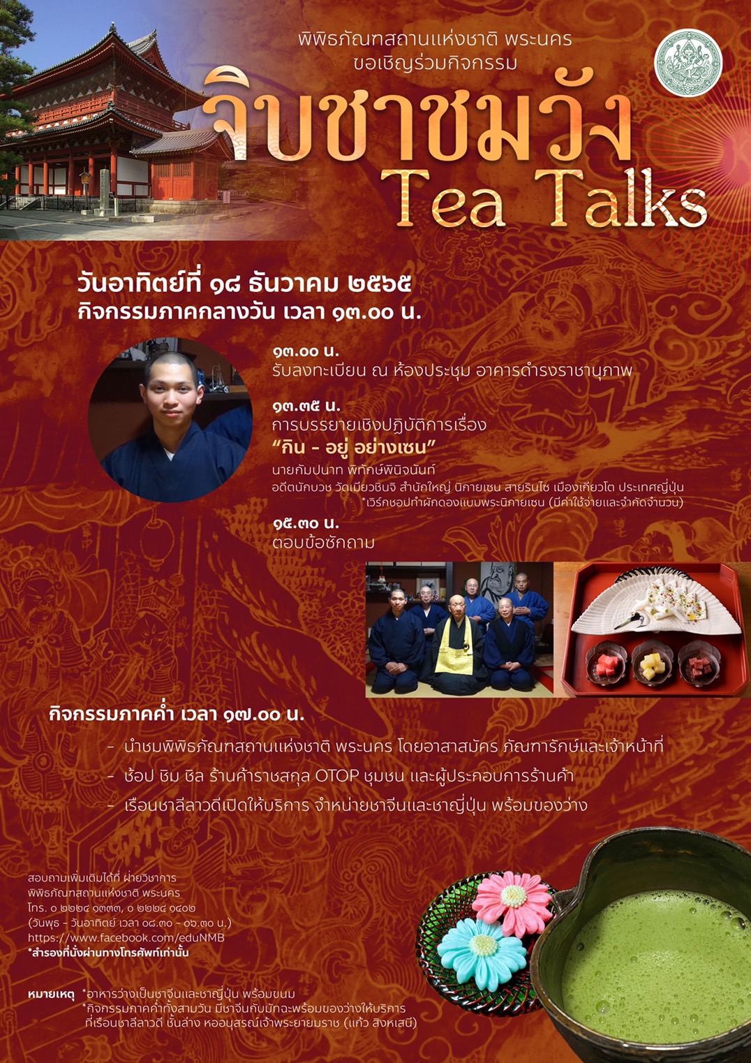 ขอเชิญชวนร่วมกิจกรรม จิบชาชมวัง tea talks ปี ๒ "วิถีแห่งเบื้องบูรพา" ๑๖ - ๑๘ ธันวาคมนี้