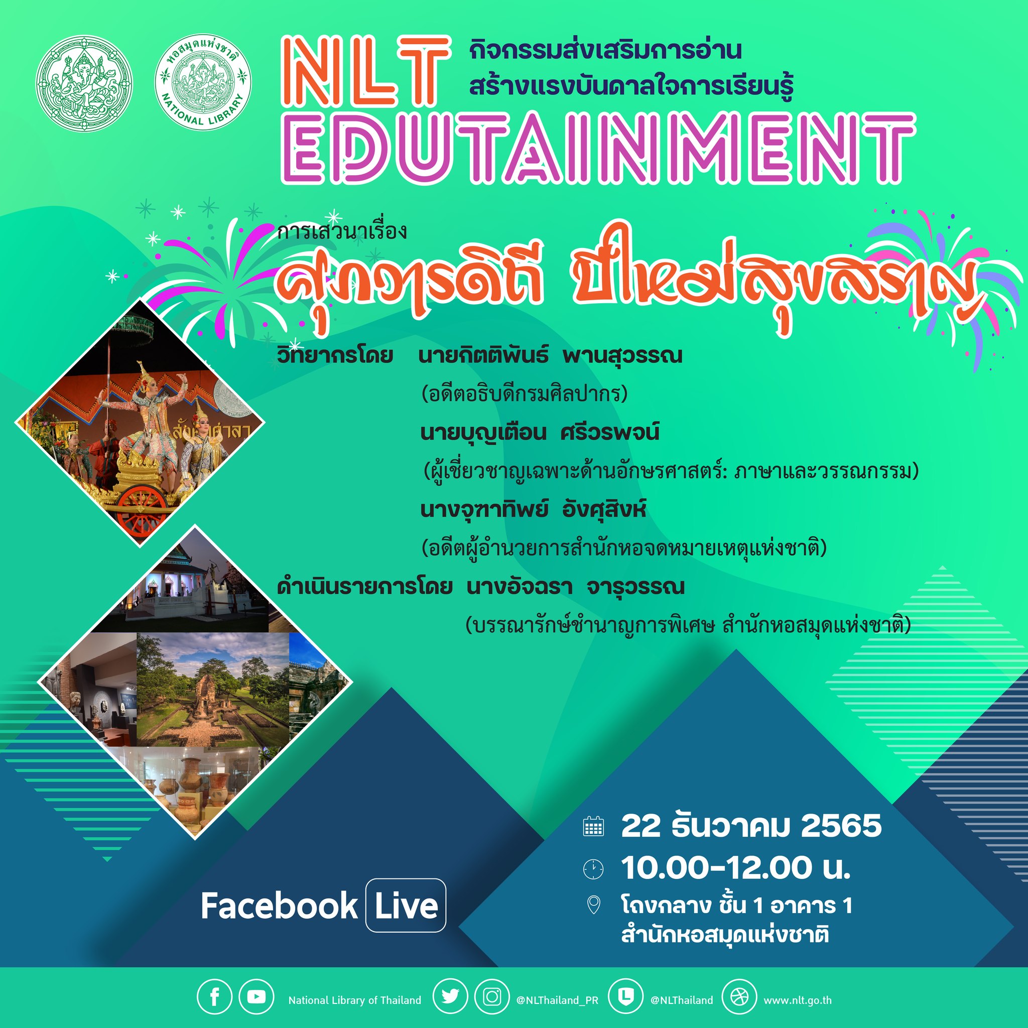 ขอเชิญร่วมฟังการเสวนา เรื่อง "ศุภวารดิถี ปีใหม่สุขสราญ" ในกิจกรรมส่งเสริมการอ่าน NLT Edutainment ปีที่ ๖ ครั้งที่ ๑