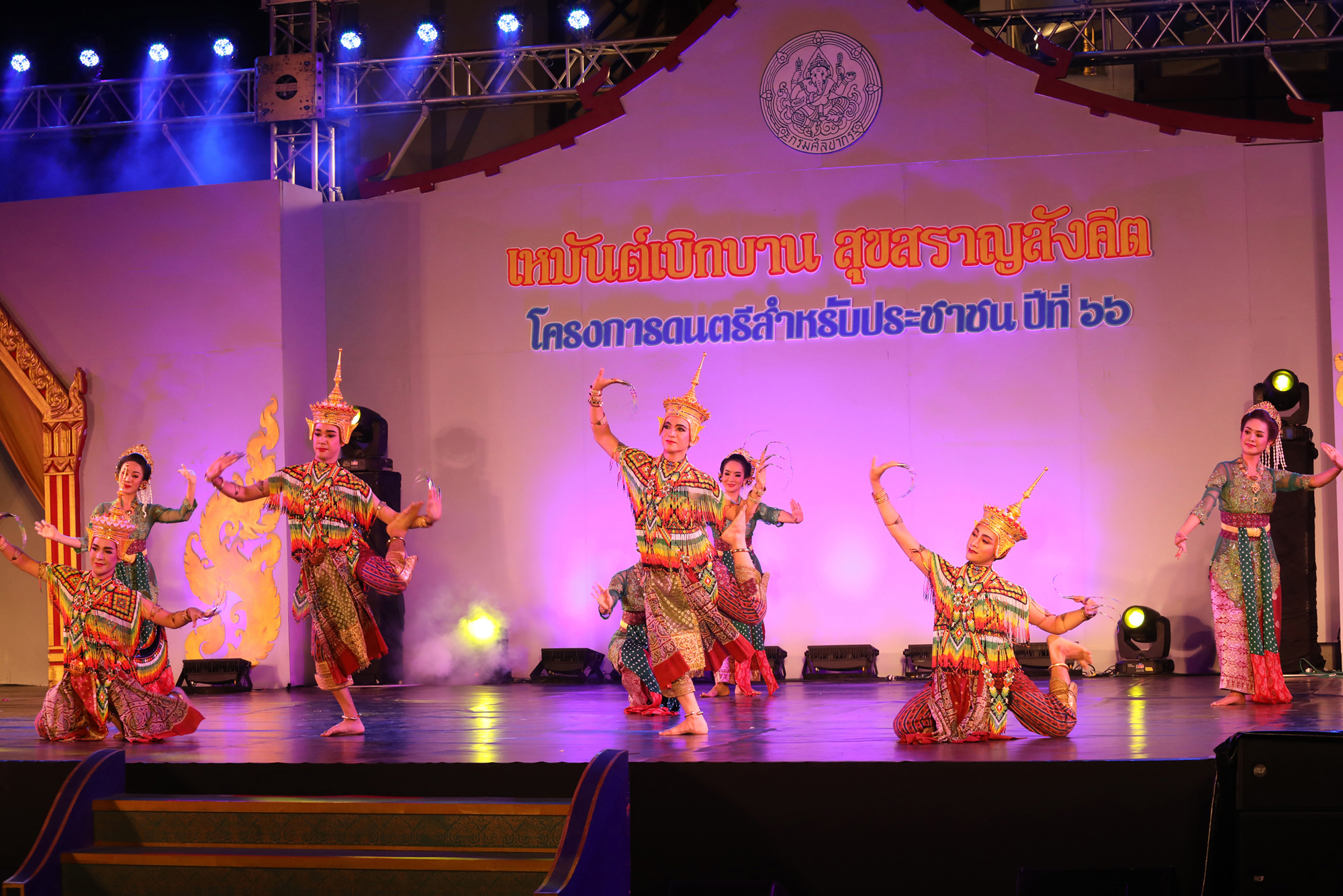 โครงการดนตรีสำหรับประชาชน ปีที่ ๖๖ “เหมันต์เบิกบาน สุขสราญสังคีต” นี้ เป็นการแสดงประจำปีของสำนักการสังคีต กรมศิลปากร เพื่อเผยแพร่และอนุรักษ์ศิลปวัฒนธรรม โดยมีการจัดรายการแสดงและการบรรเลงหลากหลายรูปแบบทั้งการแสดงโขน ละคร วิพิธทัศนา การบรรเลงดนตรีไทยและการบรรเลงดนตรีสากล อาทิ การบรรเลงดนตรีสากล “ฟังดนตรีเถิดชื่นใจ เถลิงศกใหม่ต้อนรับวันเด็ก” การแสดงละคร เรื่องสาวิตรี ชุด “อมตะเสน่หา” การแสดงโขน เรื่องรามเกียรติ์ ชุด “ทศกัณฐ์พรหมพงศ์ลงกา” การแสดงละครเสภา เรื่องกากี ตอนเสน่ห์เล่ห์คนธรรพ์ กำหนดจัดแสดงทุกวันอาทิตย์ ตั้งแต่เวลา ๑๗.๓๐ น. ถึง ๑๙.๓๐ น. ระหว่างวันอาทิตย์ที่ ๑๘ ธันวาคม ๒๕๖๕ ถึงวันอาทิตย์ที่ ๒๖ มีนาคม ๒๕๖๖ (งดการแสดงในวันอาทิตย์ที่ ๑ มกราคม และวันอาทิตย์ที่ ๒๖ กุมภาพันธ์ ๒๕๖๖) ค่าเข้าชมคนละ ๒๐ บาท โดยกรมศิลปากรจะนำเงินรายได้ดังกล่าวส่งเป็นเงินรายได้แผ่นดิน