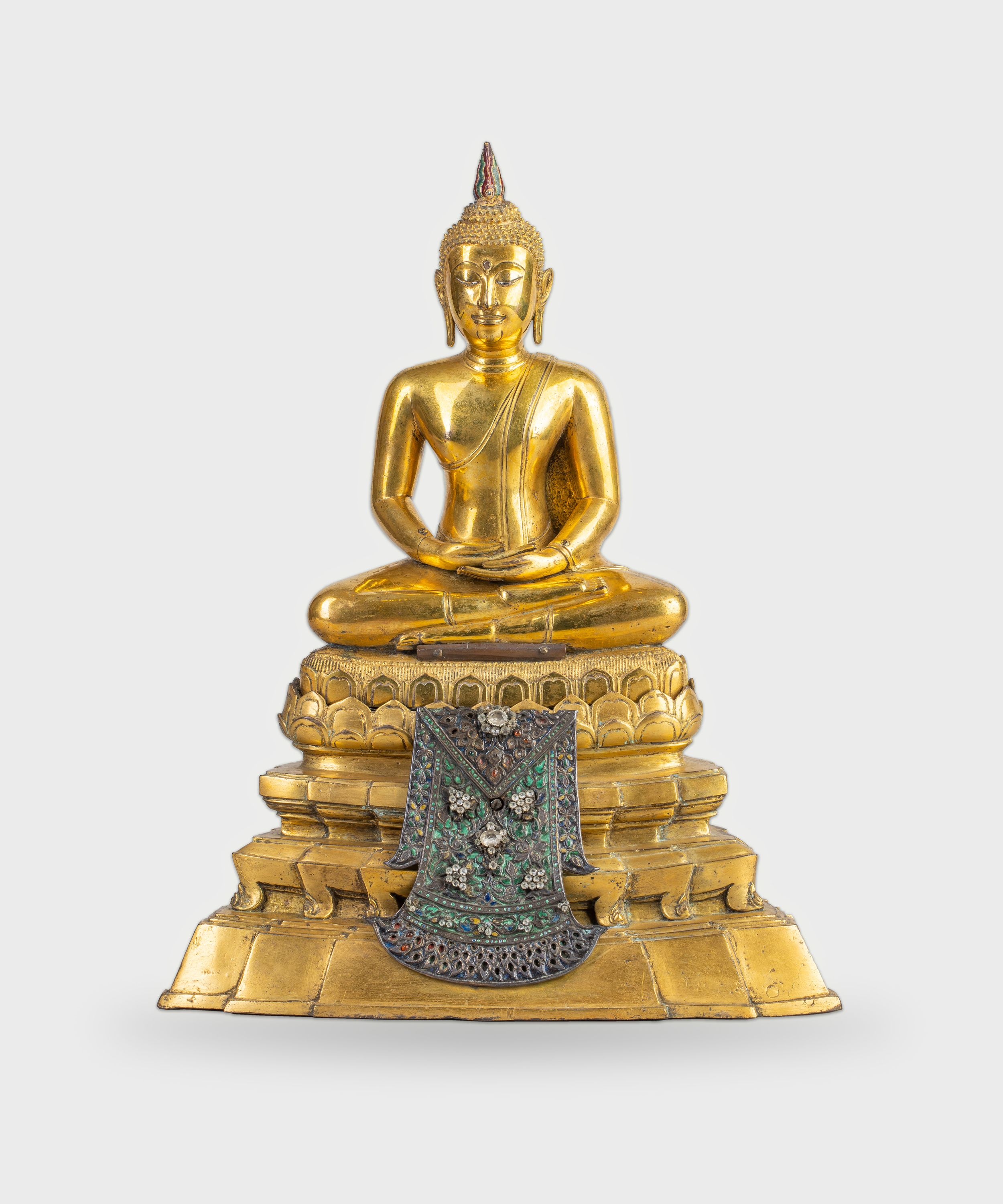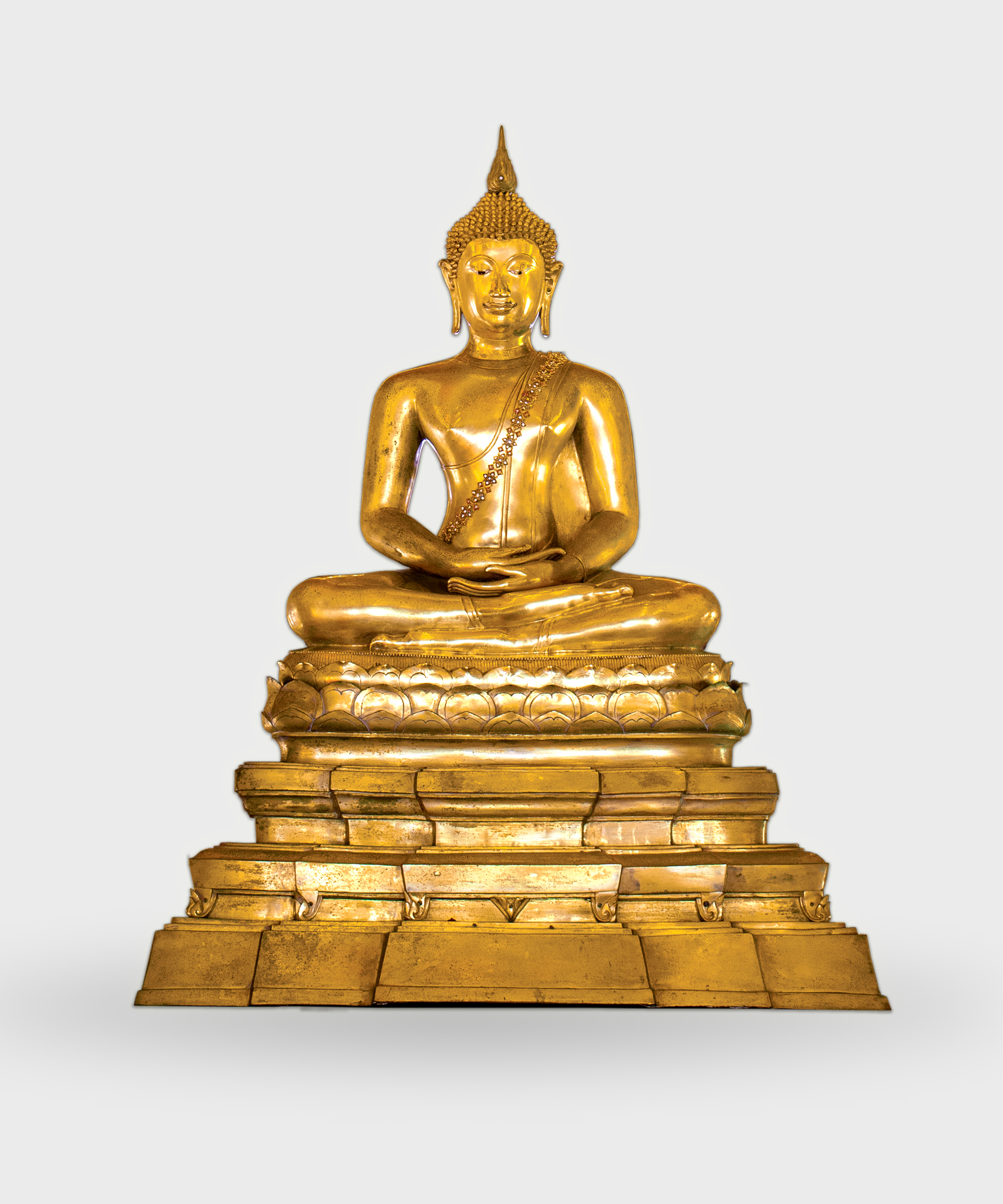 พระพุทธสิหิงค์ พระพุทธรูปสัมฤทธิ์กะไหล่ทอง ประทับขัดสมาธิราบ พระหัตถ์ทั้งสองวางซ้อนกันบน พระเพลาแสดงปางสมาธิ เป็นพระพุทธรูปศักดิ์สิทธิ์ประจำพระราชวังบวรสถานมงคล (วังหน้า) ตามตำนานพระ พุทธสิหิงค์ได้รับการอัญเชิญไปประดิษฐานเป็นสิริยังพระนครหลวงโบราณหลายแห่ง นับแต่สุโขทัย เชียงใหม่ พระนครศรีอยุธยา ตราบเท่าถึงกรุงรัตนโกสินทร์