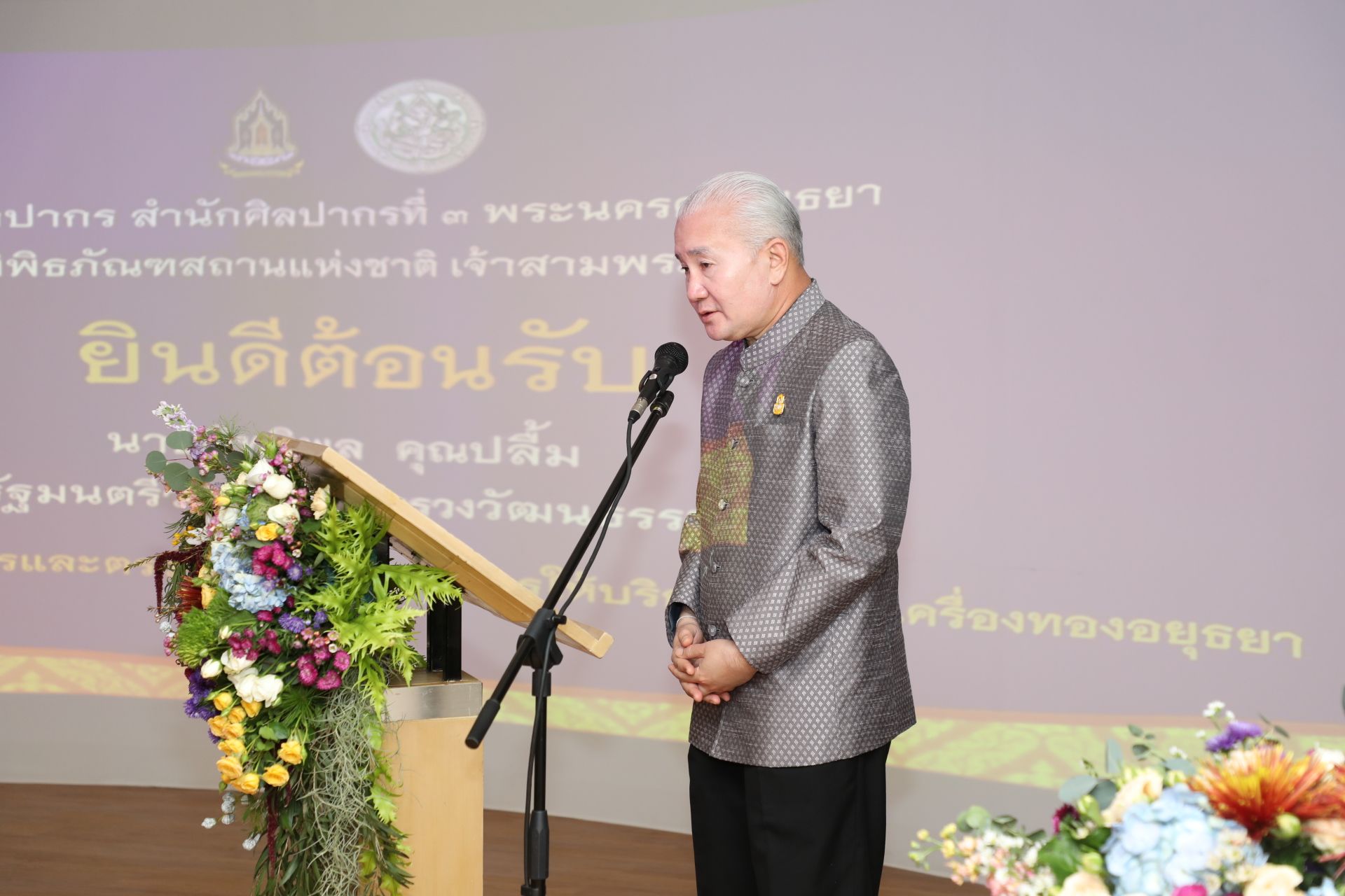วันนี้ (วันพฤหัสบดีที่ ๒๙ ธันวาคม ๒๕๖๕) เวลา ๑๐.๐๐ น. นายอิทธิพล คุณปลื้ม รัฐมนตรีว่าการกระทรวงวัฒนธรรม ตรวจเยี่ยมความพร้อมในการเปิดให้บริการอาคารเครื่องทองอยุธยา พิพิธภัณฑสถานแห่งชาติ เจ้าสามพระยา จังหวัดพระนครศรีอยุธยา พร้อมด้วยนางยุพา ทวีวัฒนะกิจบวร ปลัดกระทรวงวัฒนธรรม นายประทีป การมิตรี รองผู้ว่าราชการจังหวัดพระนครศรีอยุธยา โดยมีนายพนมบุตร จันทรโชติ อธิบดีกรมศิลปากร ข้าราชการและเจ้าหน้าที่กรมศิลปากร สำนักศิลปากรที่ ๓ พระนครศรีอยุธยา พิพิธภัณฑสถานแห่งชาติ เจ้าสามพระยา ให้การต้อนรับ
