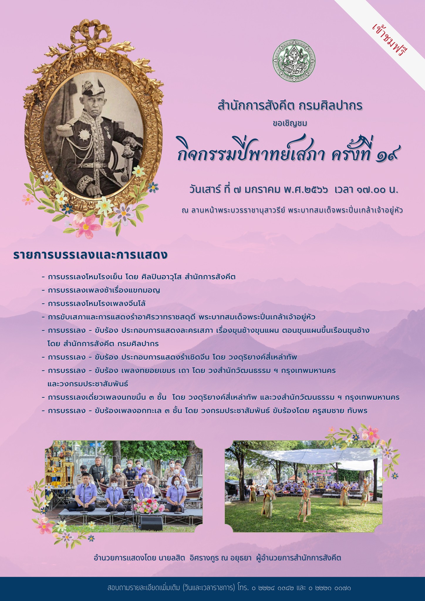 ขอเชิญชมรายการปี่พาทย์เสภา ครั้งที่ ๑๙ ในวันเสาร์ที่ ๗ มกราคม ๒๕๖๖