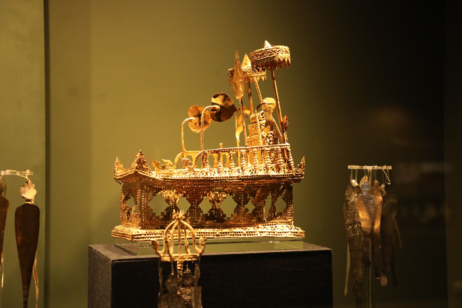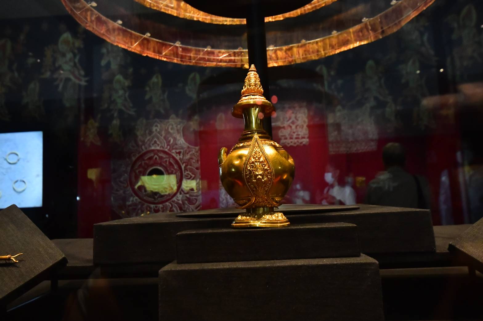 จำนวนโบราณวัตถุที่จัดแสดงภายในอาคารเครื่องทอง มีจำนวนทั้งสิ้น ๒,๒๔๔ รายการ มีโบราณวัตถุชิ้นเด่น อาทิ