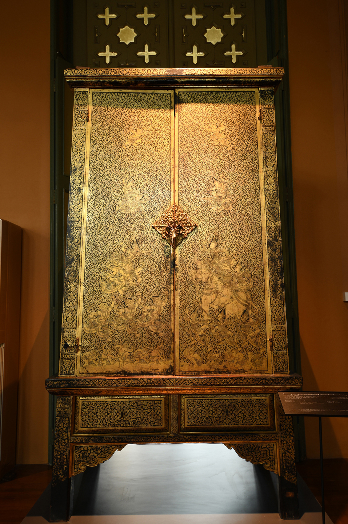 ห้องที่ ๕ จัดแสดงตู้พระธรรมที่มีลวดลายในเรื่องรามเกียรติ์