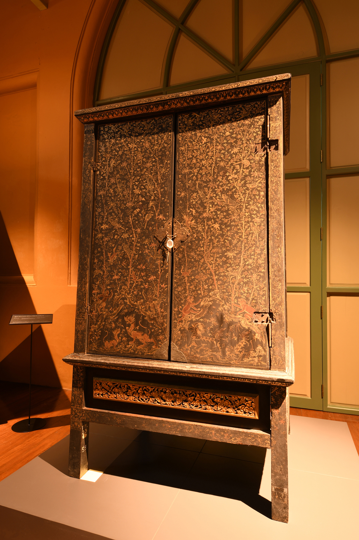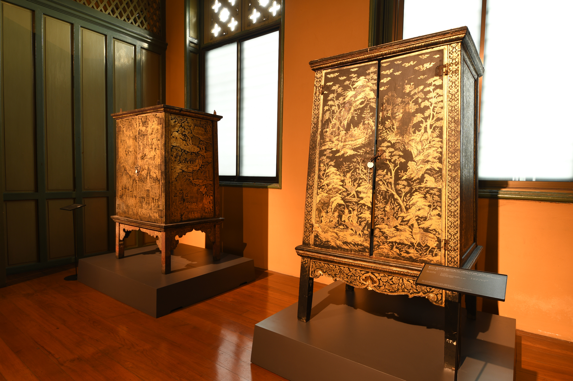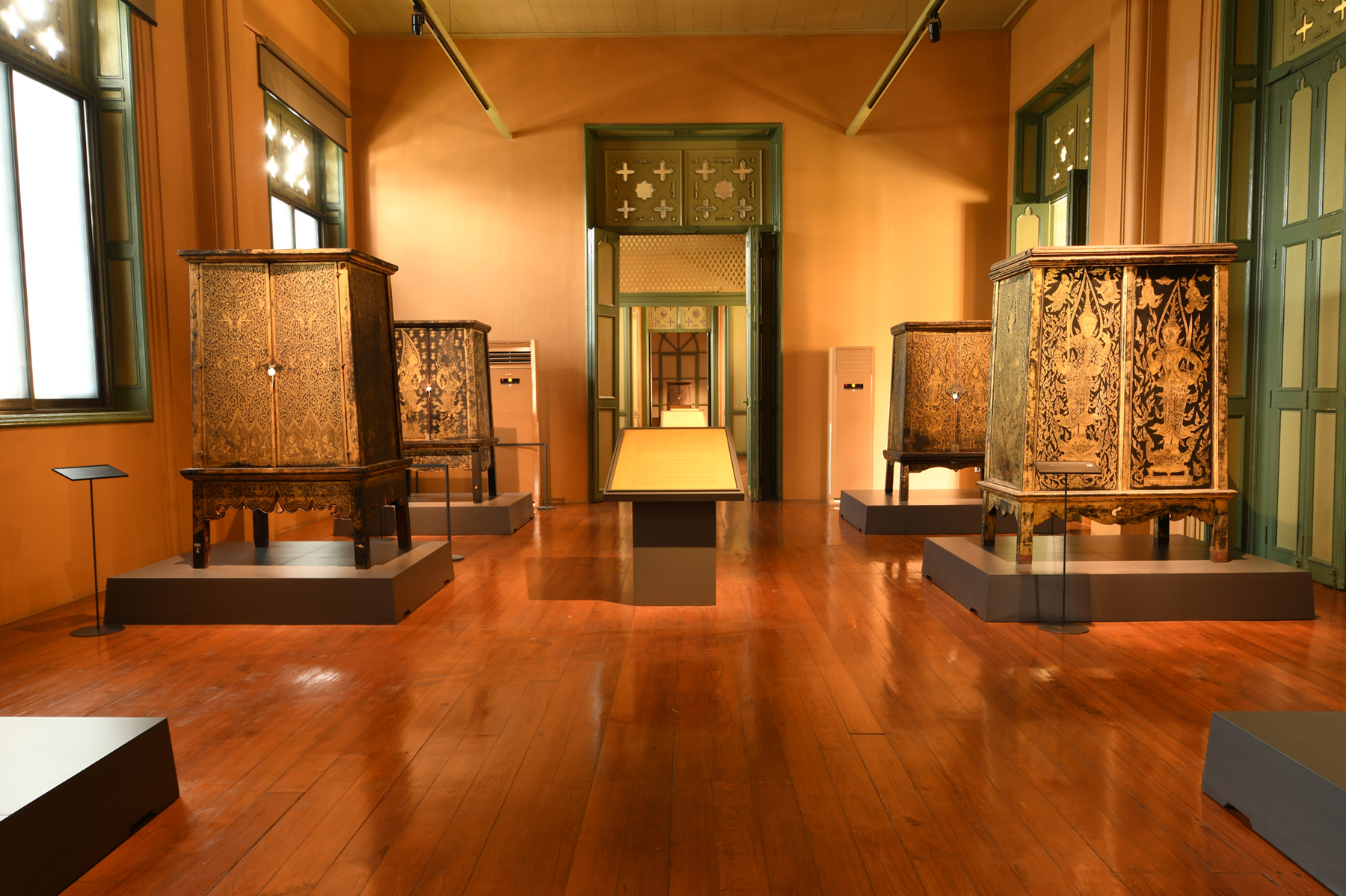 ผู้สนใจสามารถเข้าชมนิทรรศการ "ร.ศ. ๒๔๒ ชมตู้ลายทองสืบสานงานศิลป์" ณ อาคารถาวรวัตถุ (ตึกแดง) ถนนหน้าพระธาตุ เขตพระนคร กรุงเทพฯ ทุกวันพุธ - วันอาทิตย์ เวลา ๐๙.๐๐ – ๑๖.๐๐ น. ปิดวันจันทร์ - วันอังคาร และวันหยุดนักขัตฤกษ์